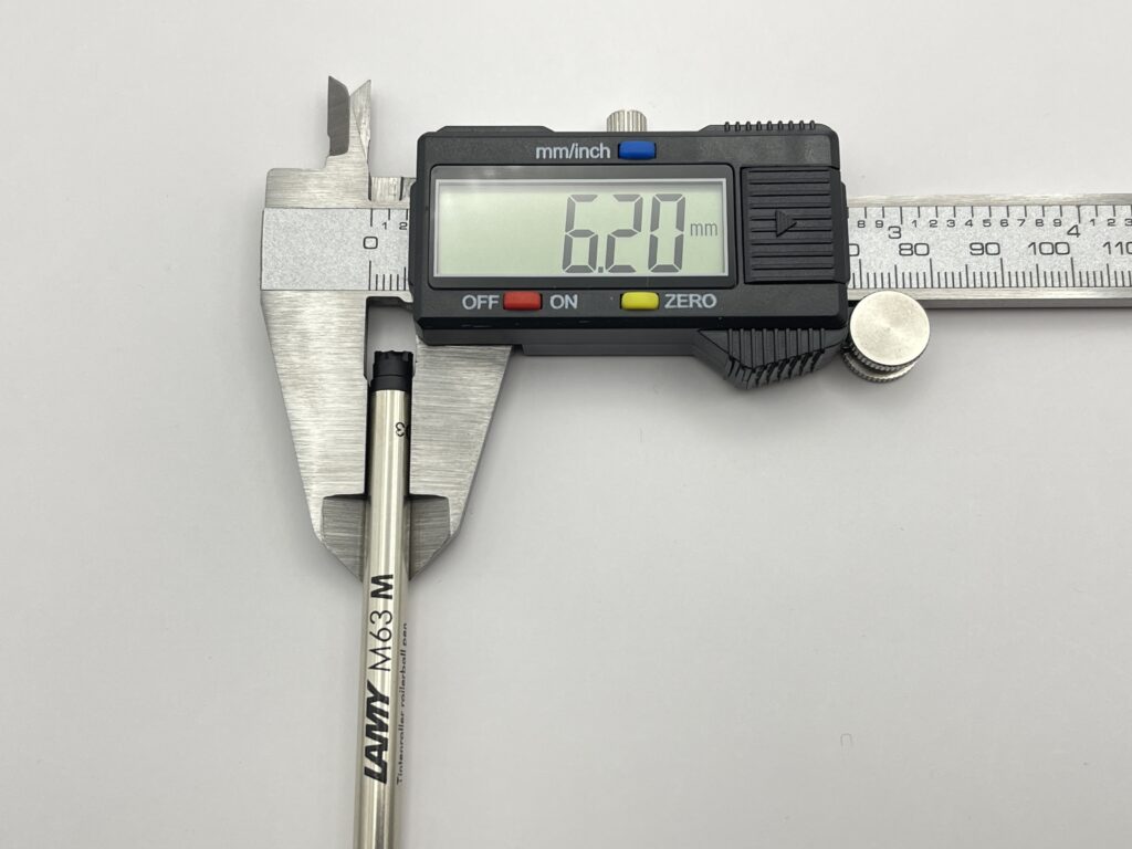 「M63」はペン先径 2.48mm、軸径 6.20mm、全長 115.30mmです。