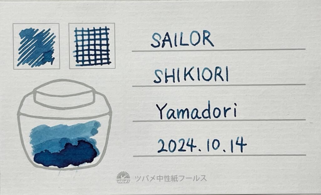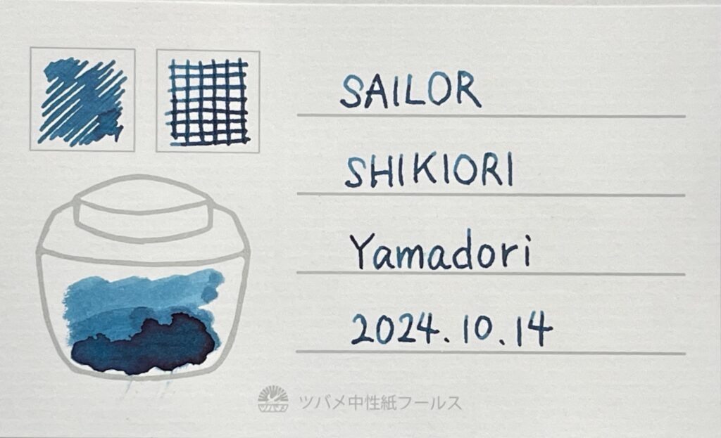 | 退色しなかった | パイロット 色彩雫「冬将軍」 パイロット 色彩雫「霧雨」 パイロット 色彩雫「月夜」 パイロット 色彩雫「紫陽花」 パイロット 色彩雫「朝顔」 パイロット 色彩雫「天色」 パイロット 色彩雫「紺碧」 パイロット 色彩雫「孔雀」 パイロット 色彩雫「六花」 パイロット 色彩雫「松露」 パイロット 色彩雫「翠玉」 セーラー 四季織「霜夜」 セーラー 四季織「山鳥」 シュナイダー 「アイスブルー」 |