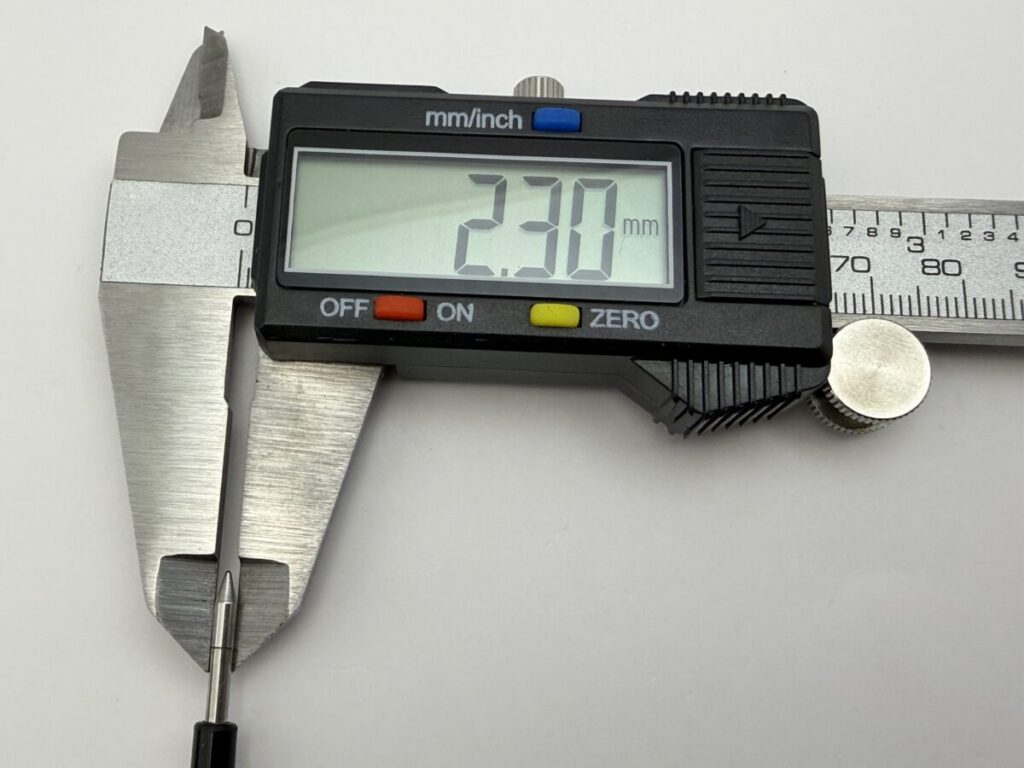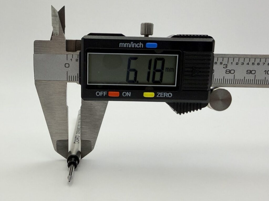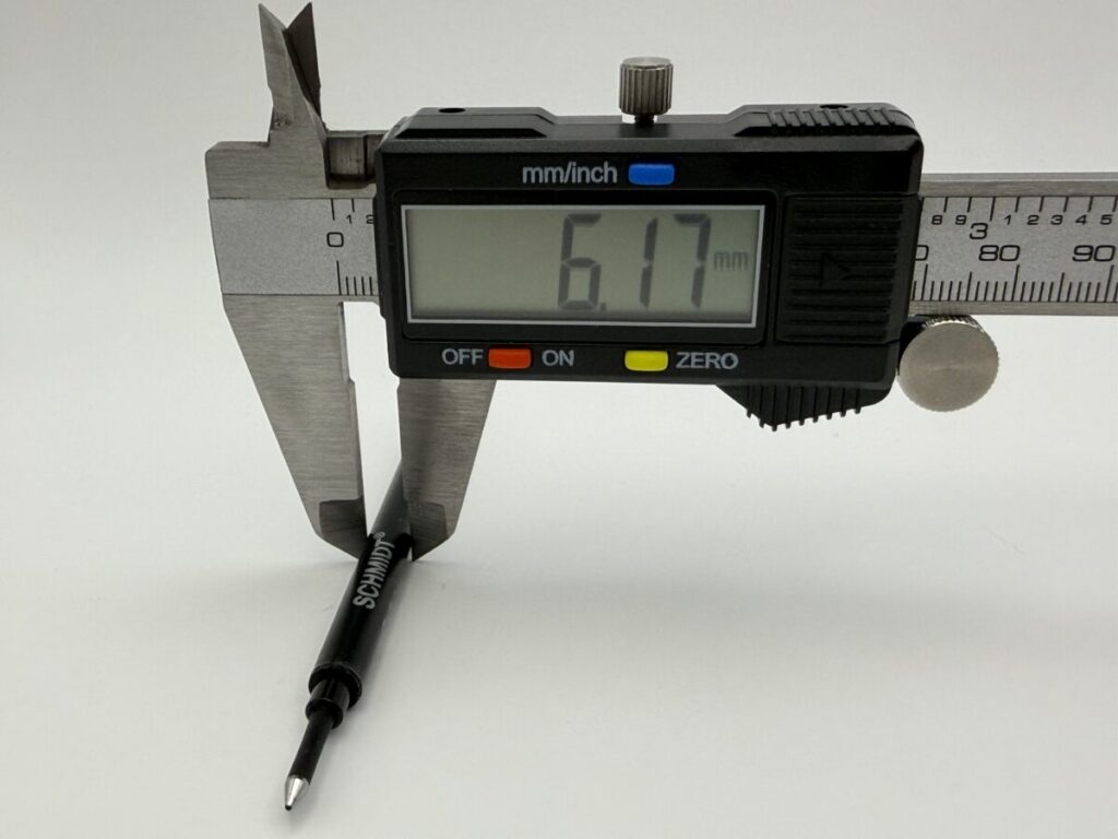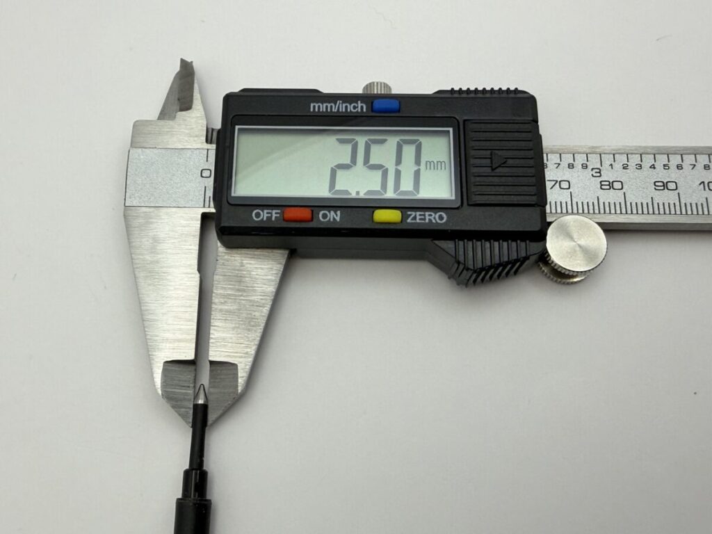 このとおり、全長や軸径は大きな変わりはありませんが、ペン先径が0.2mm違いますね。