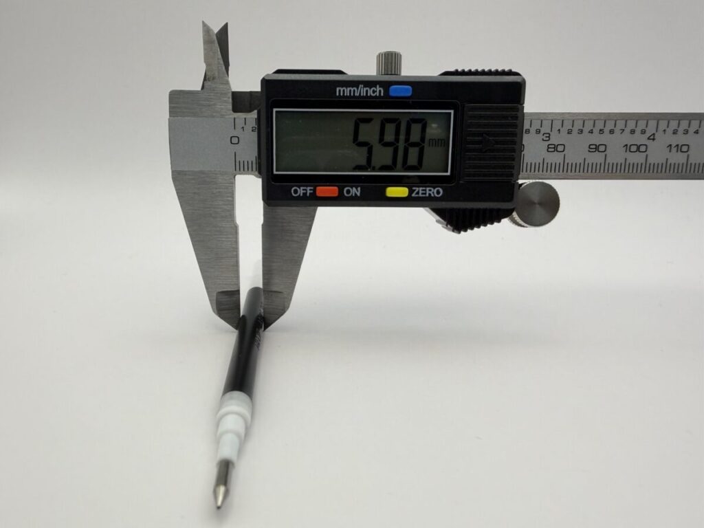 採寸結果での予想に反して、C300系リフィルはペン先と口金とに隙間ができるものの、検証したどれもがカタつきがなく安定して筆記ができるという結果になりました。