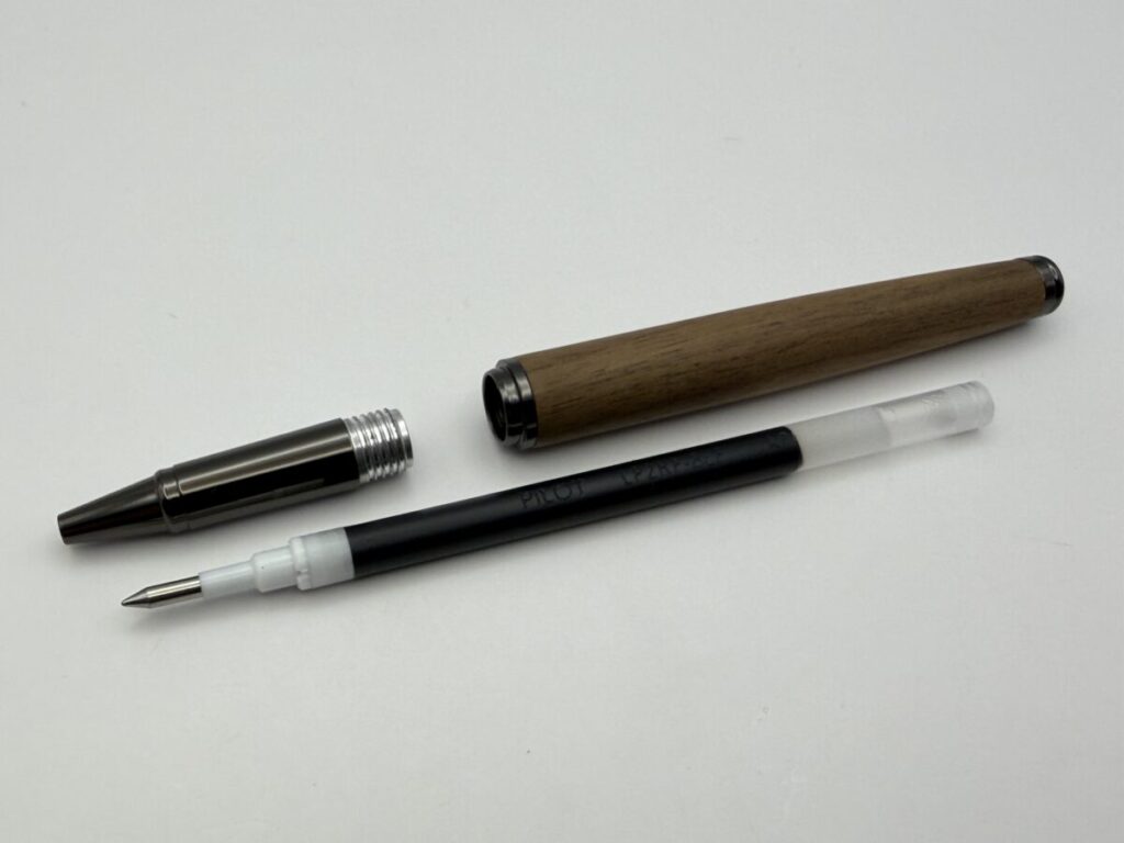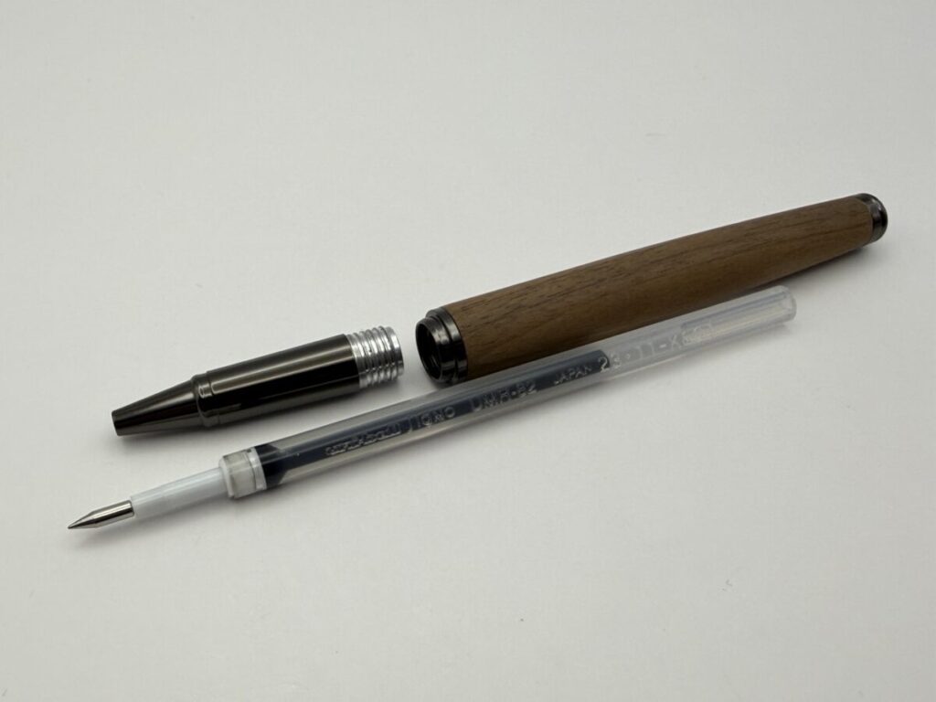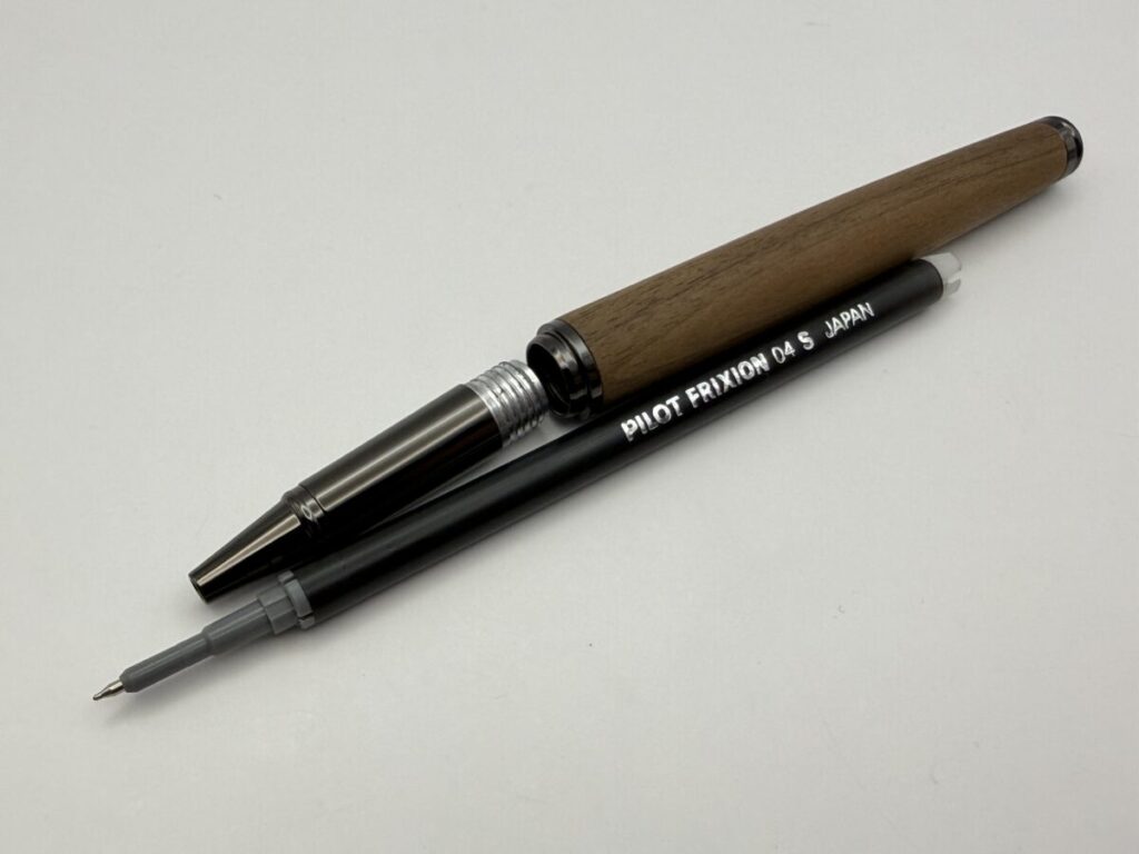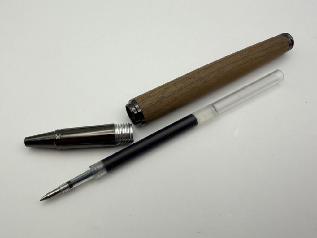 今回はハコアの木軸ローラーボール「BALLPOINT PEN SLEEK」とC300系リフィル+フリクションリフィル+ゲル「L」型リフィルとの互換性を検証してみました。