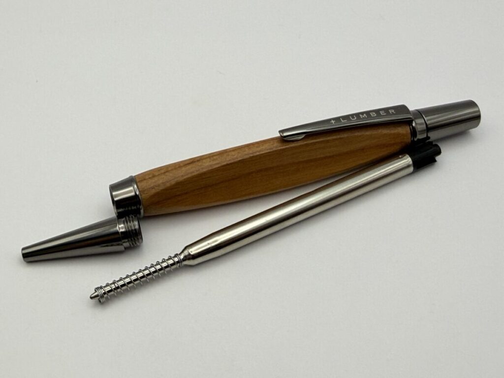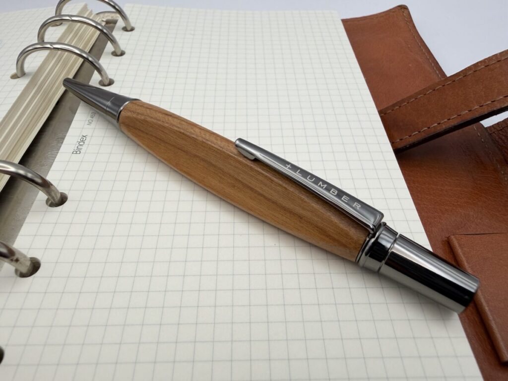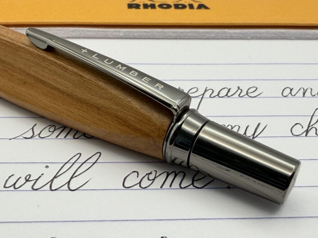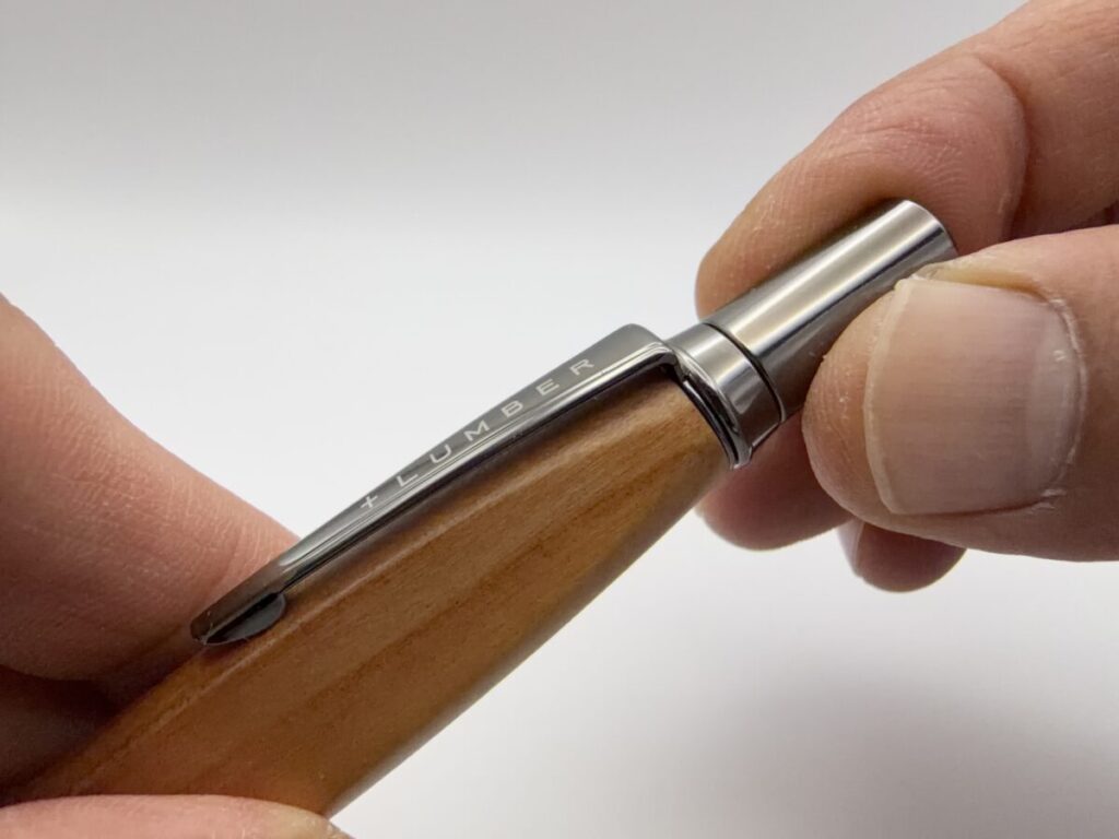 モデルチェンジ前は軸の木材部分に刻印されていましたが、モデルチェンジ後はクリップ部分にブランド名である「+LUMBER」が書かれていますね。