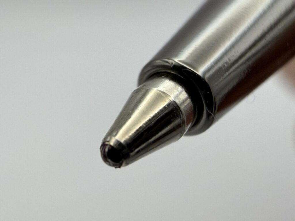 写真は今回紹介する三角軸ボールペンではなく、ノック式ボールペンの軸をアップで撮影したものです。