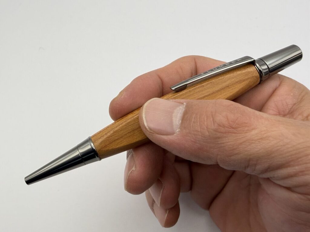 以前はこの他にパープルハート、花梨、黒檀が使われているモデルもあったようですが、現在三角軸ボールペンはこの2種類だけになっています。