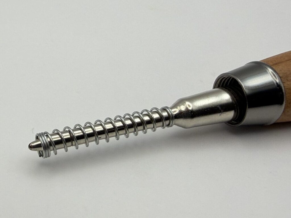 リフィルを交換するとき、バネを外して新しいリフィルのペン先にはめ込むようにします。