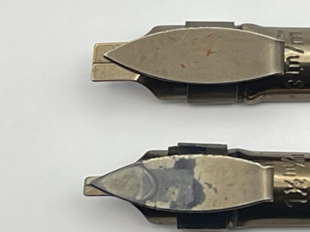 切り割り(ペン先の中央にある切れ目のこと)部分がギザギザになっているのが特徴的ですね。
