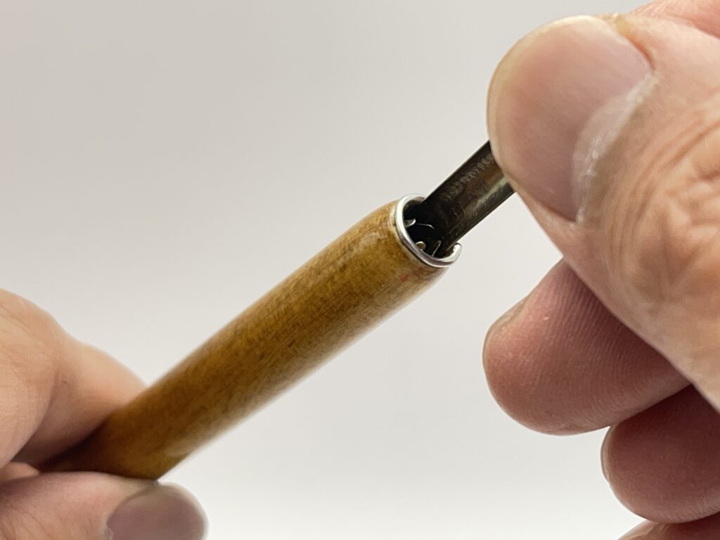 中にある爪部分と外側との隙間に差し込んでペン先を固定します。