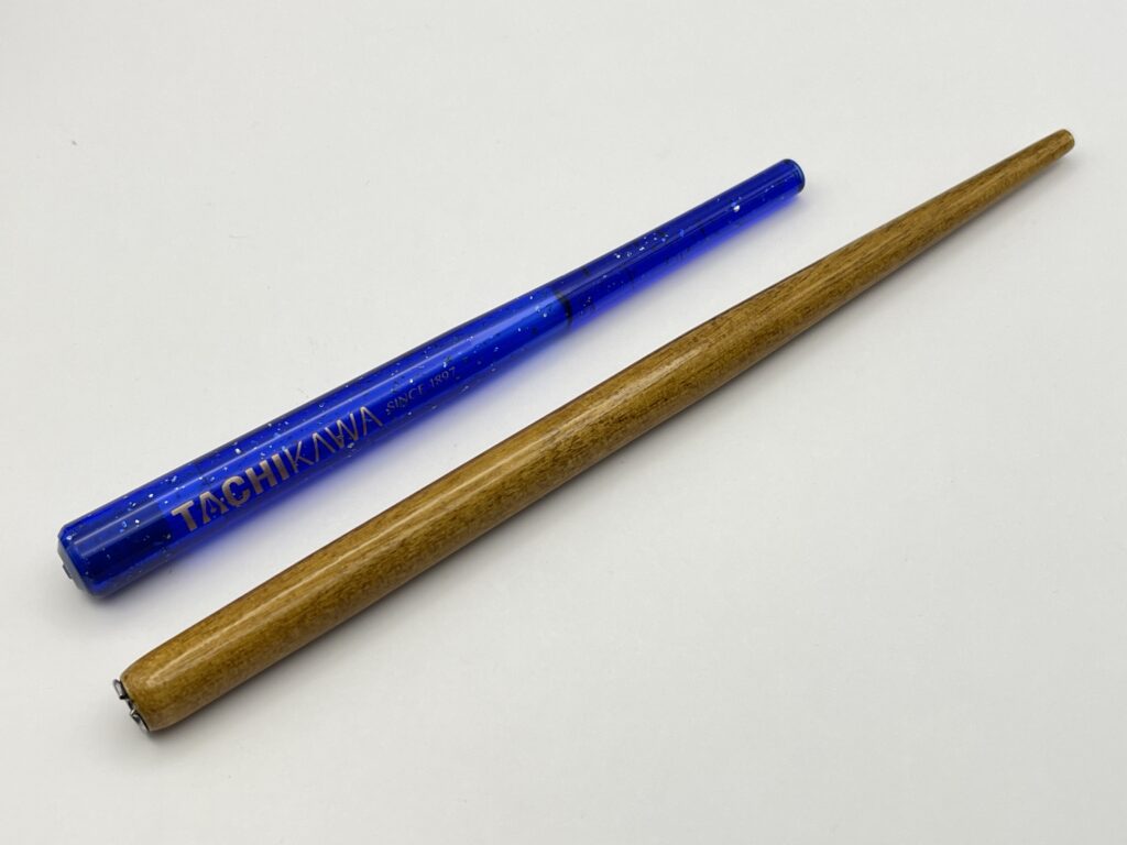 ひとつはセットに付属しているストレートホルダー(直軸)と呼ばれるもので、見た目通りまっすぐな軸にペン先をつけるタイプになります。