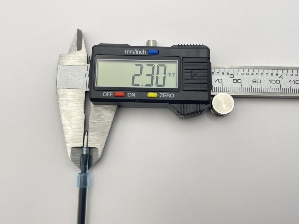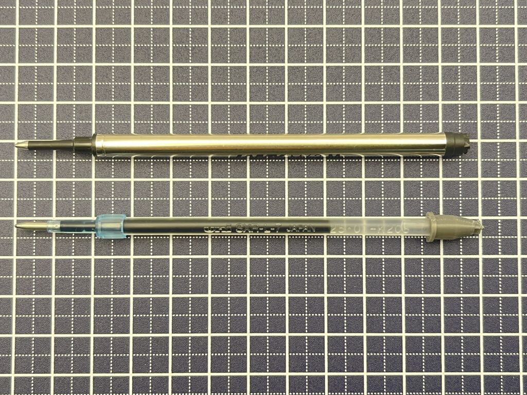 改めて、リフィルを比べてみると「SXR-L-7」のペン先径は2.3mm、「M63」のペン先径は2.5mmあり、その差0.2mm。