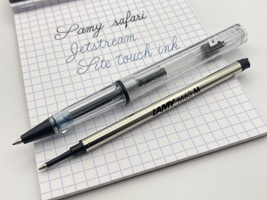 「M63」は水性インクなので使用場面が限られてしまうと思いますが、ジェットストリームインクが使えるようになるのは大きなメリットかなと思います。
