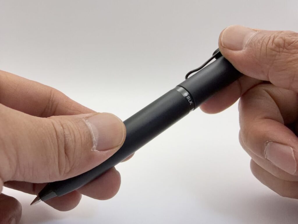 軸はストレートで過度な装飾はなく、また回転繰り出し式を採用することで、デザインがかなりシンプルになっています。