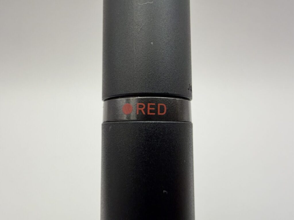 繰り出したリフィルのカラーが分かるように軸中央にカラー表示があります。