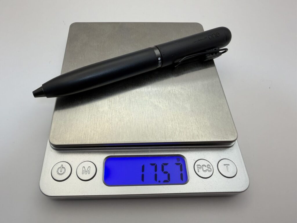「スタビライザー機構」のおかげでペン全体の重量配分が最適化され、ペンの重さが約17gと軽量ながら、低重心設計で安定してますね。