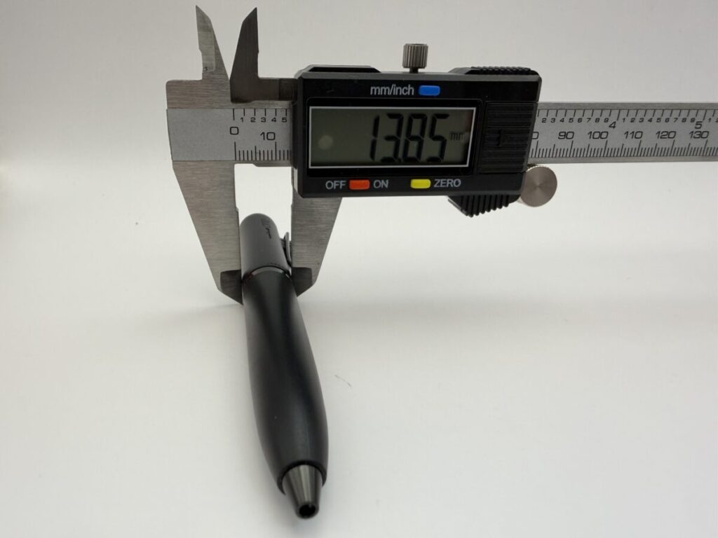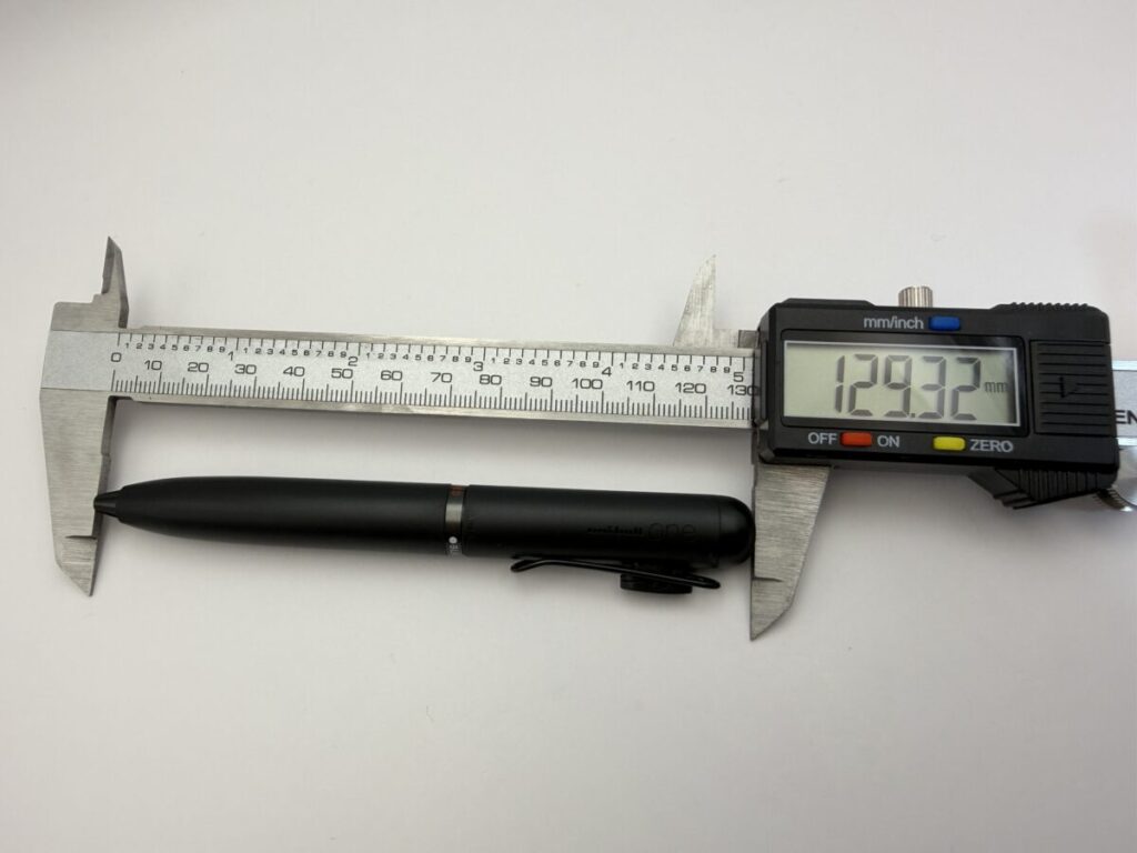採寸したところ、全長は129.32mm、軸径は13.85mm、クリップ部分を含む最大径は18.99mmでした。