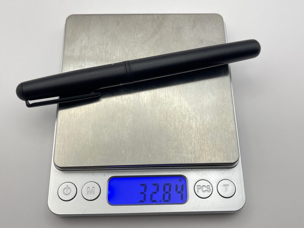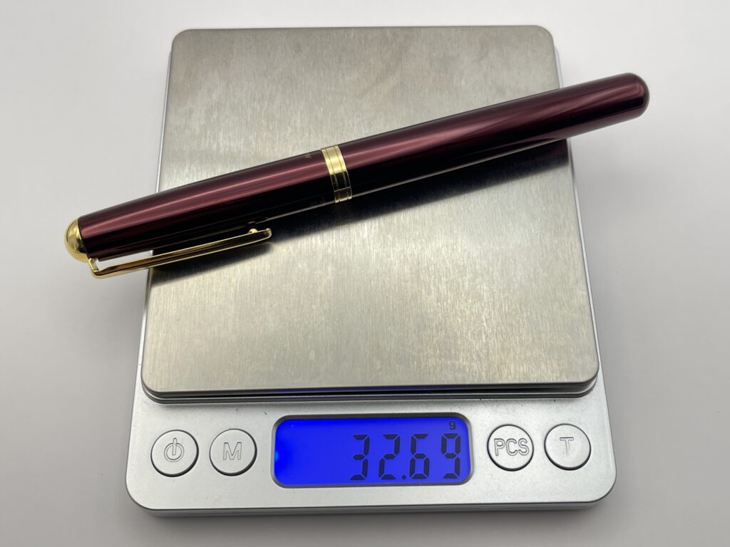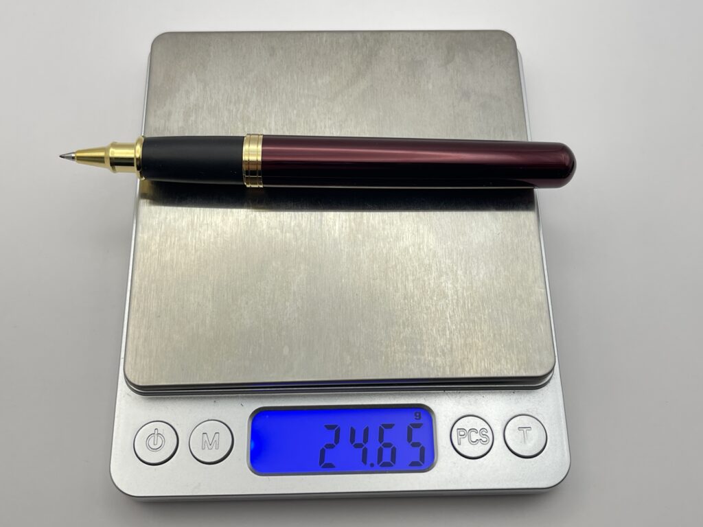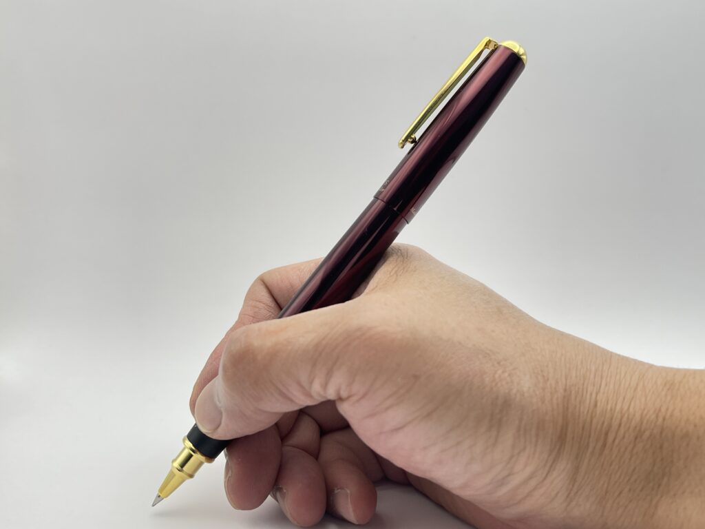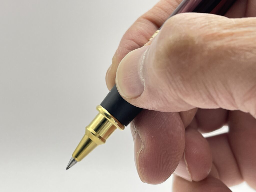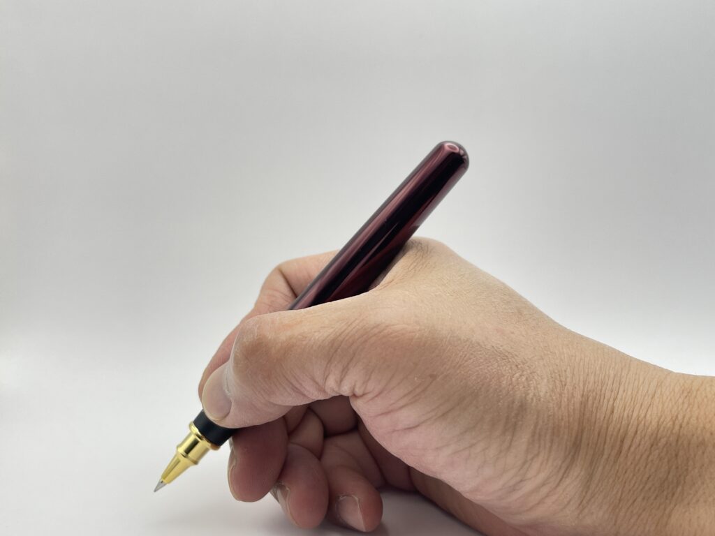 筆記時にキャップを軸につけることはできますが、キャップをつけると頭冠部分に真鍮が使われているため、重心がかなり高い位置になってしまいます。