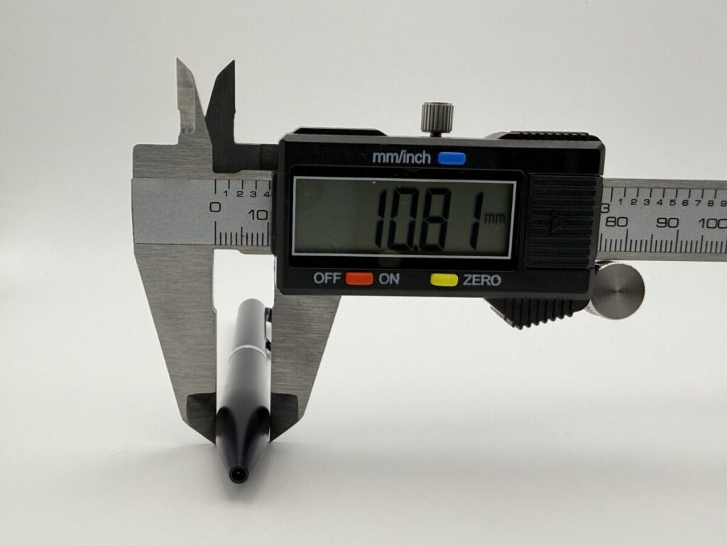 全長は134.45mm、グリップ部分の一番太いところで10.81mmでした。
