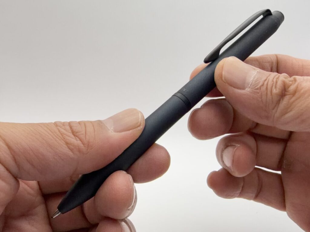 どうしても両手を使って回転してペン先を繰り出してから使うようになります。