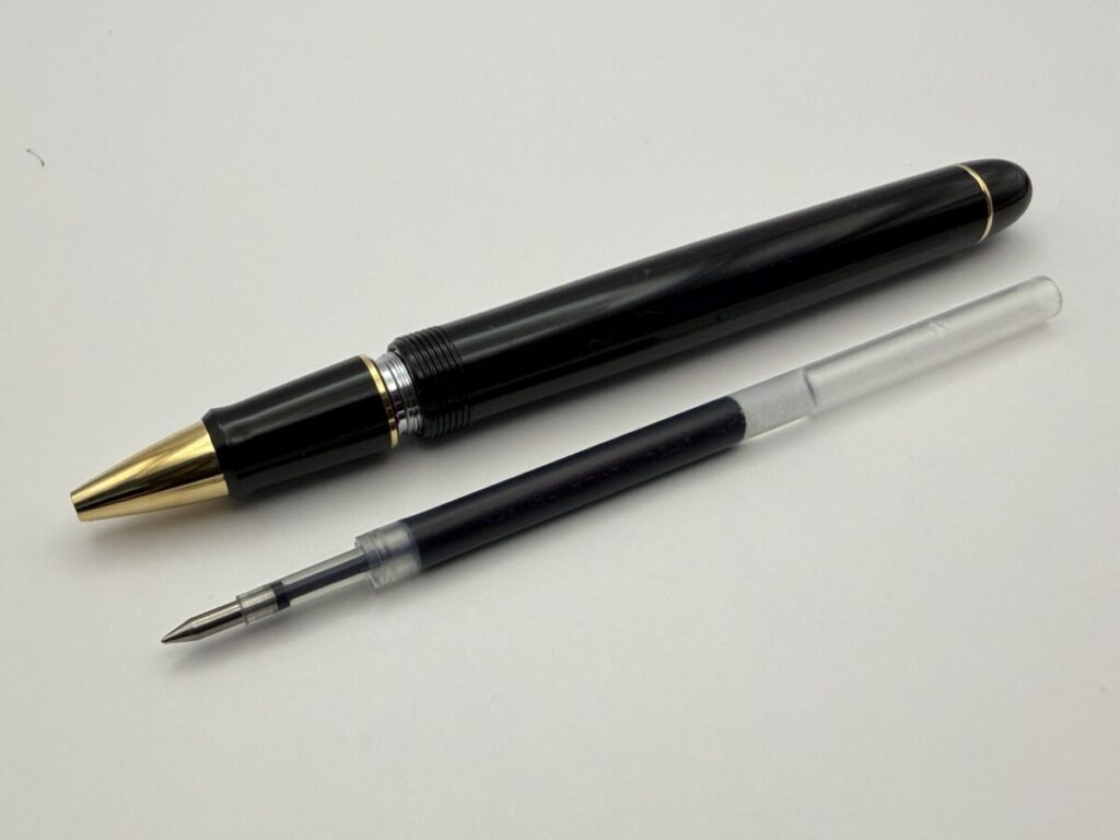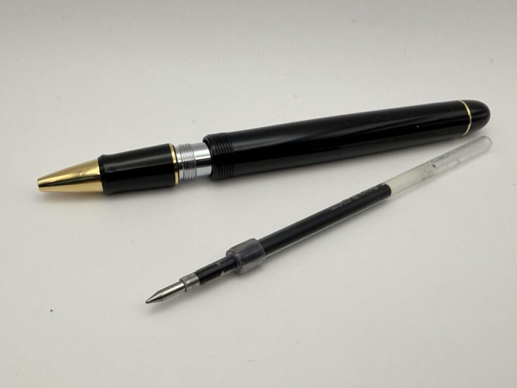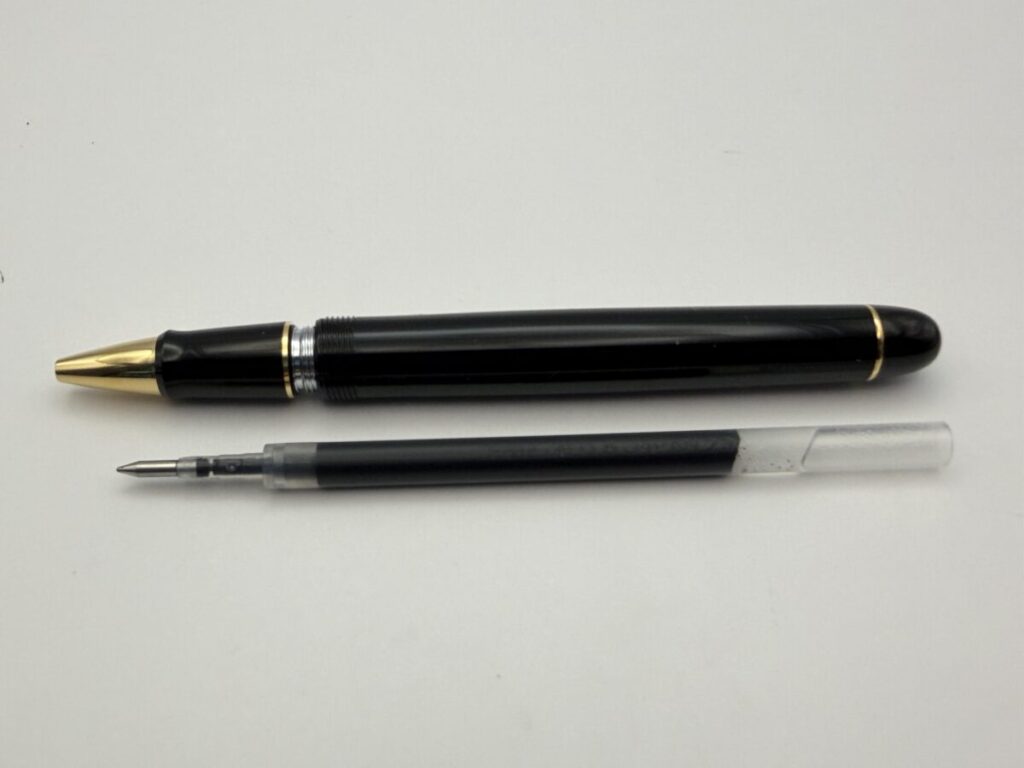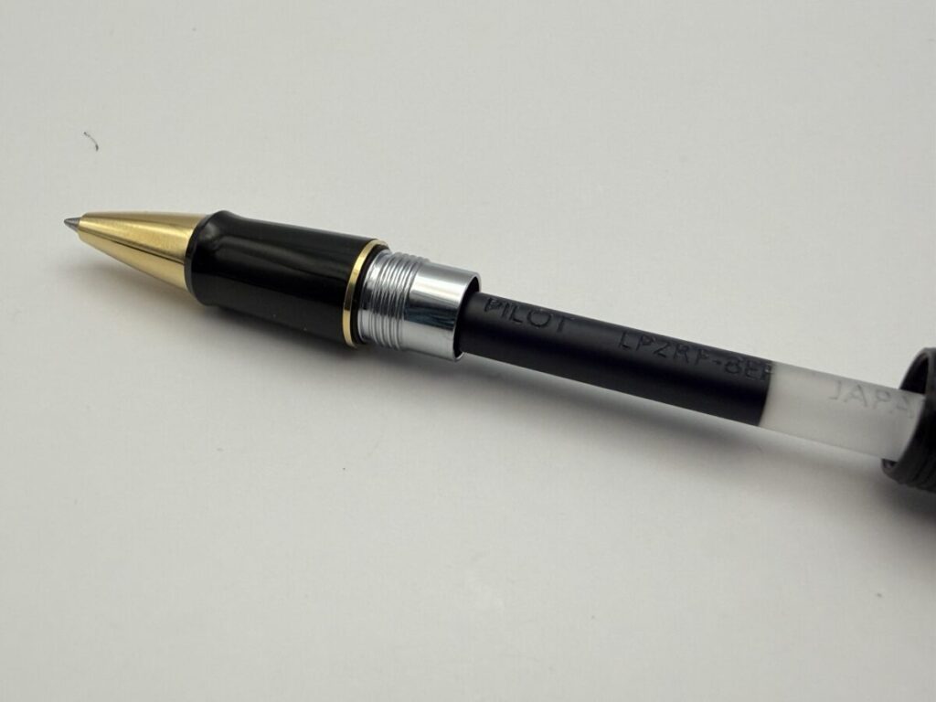 リフィルは軸内に収まり、ペン先も口金部分からちゃんと出てきました。