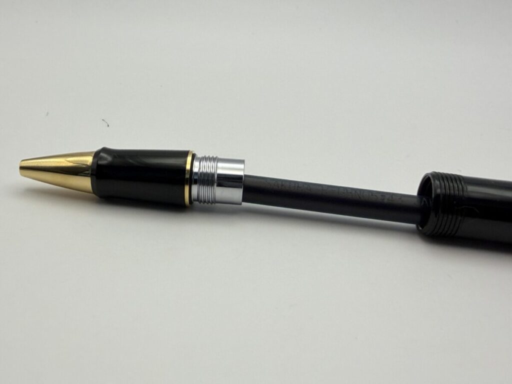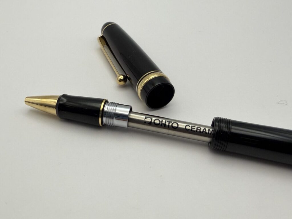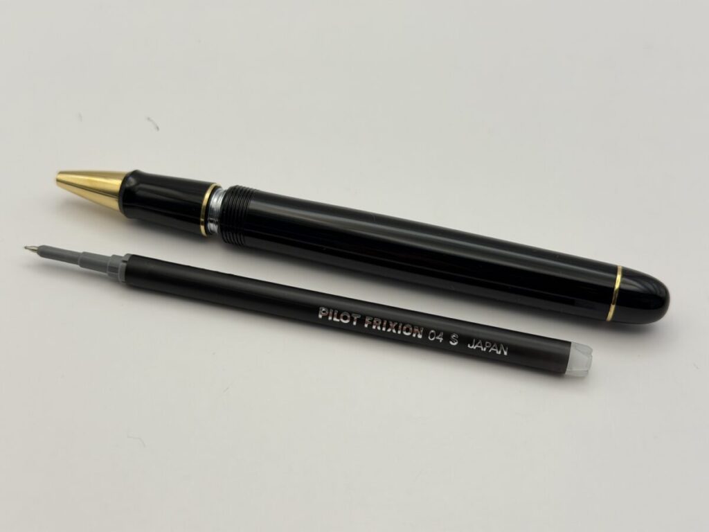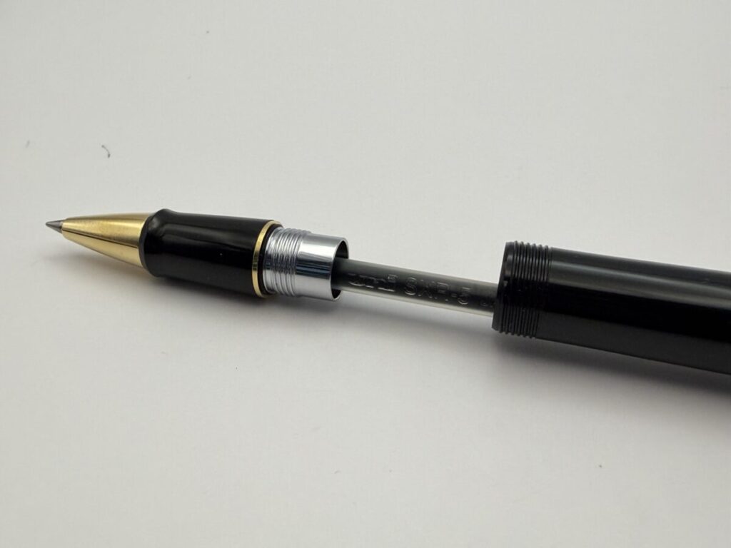 リフィルは軸内に収まり、ペン先も口金部分からちゃんと出てきました。