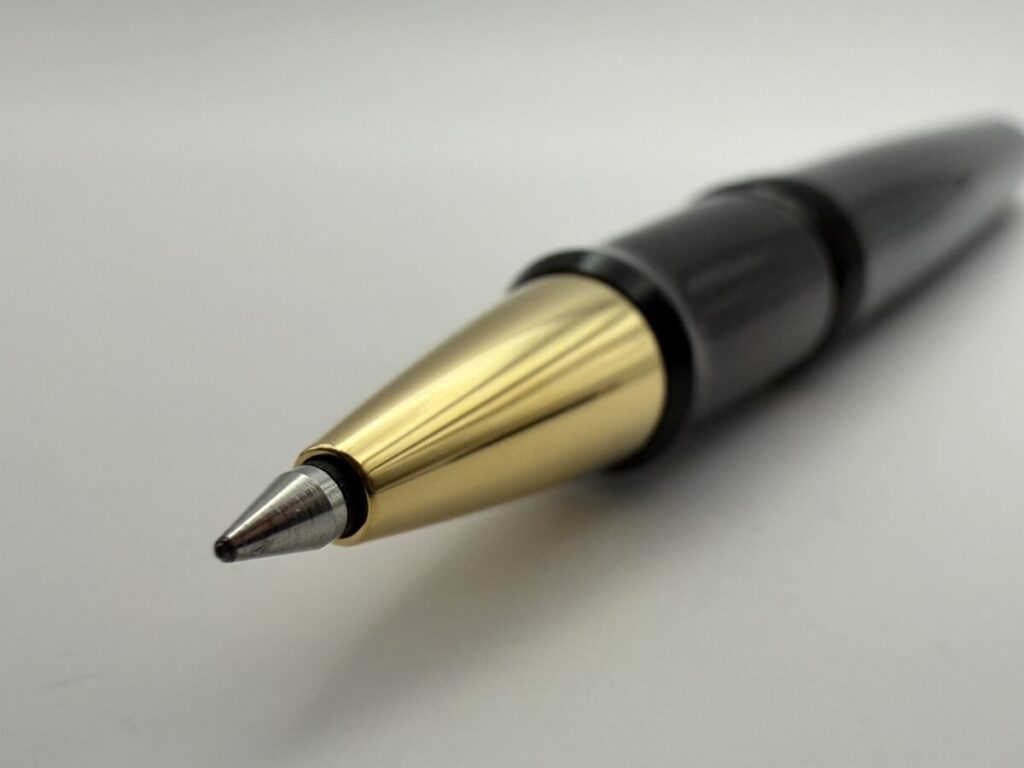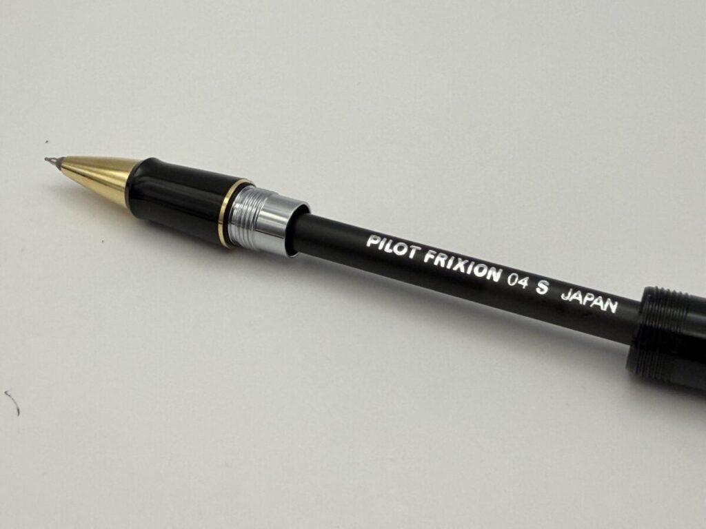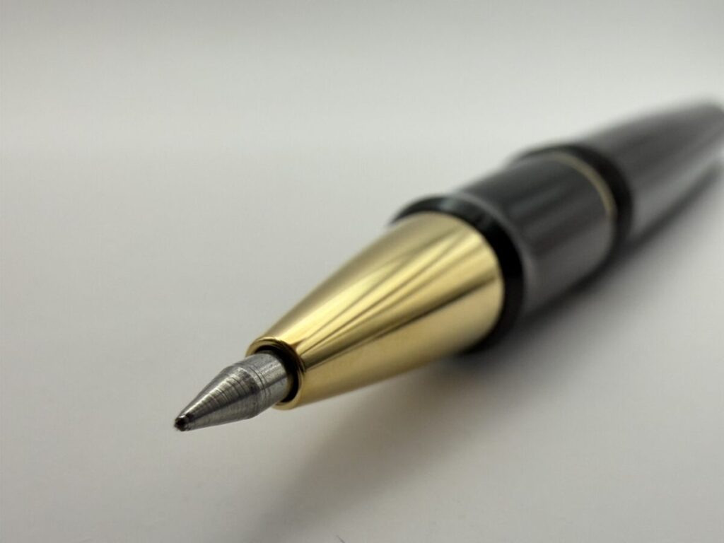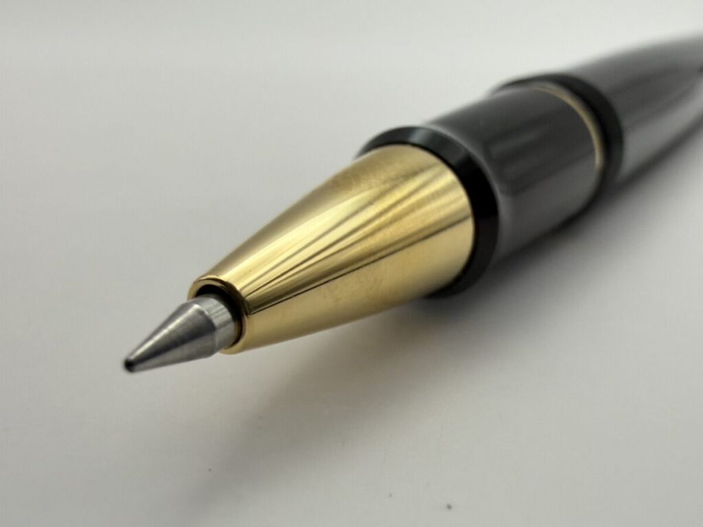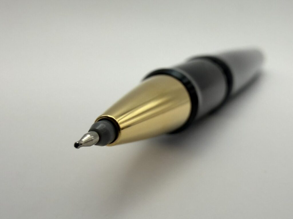 ペン先部分をアップにしてみると、やはり口金とリフィルのペン先部分とにわずかな隙間が見えます。