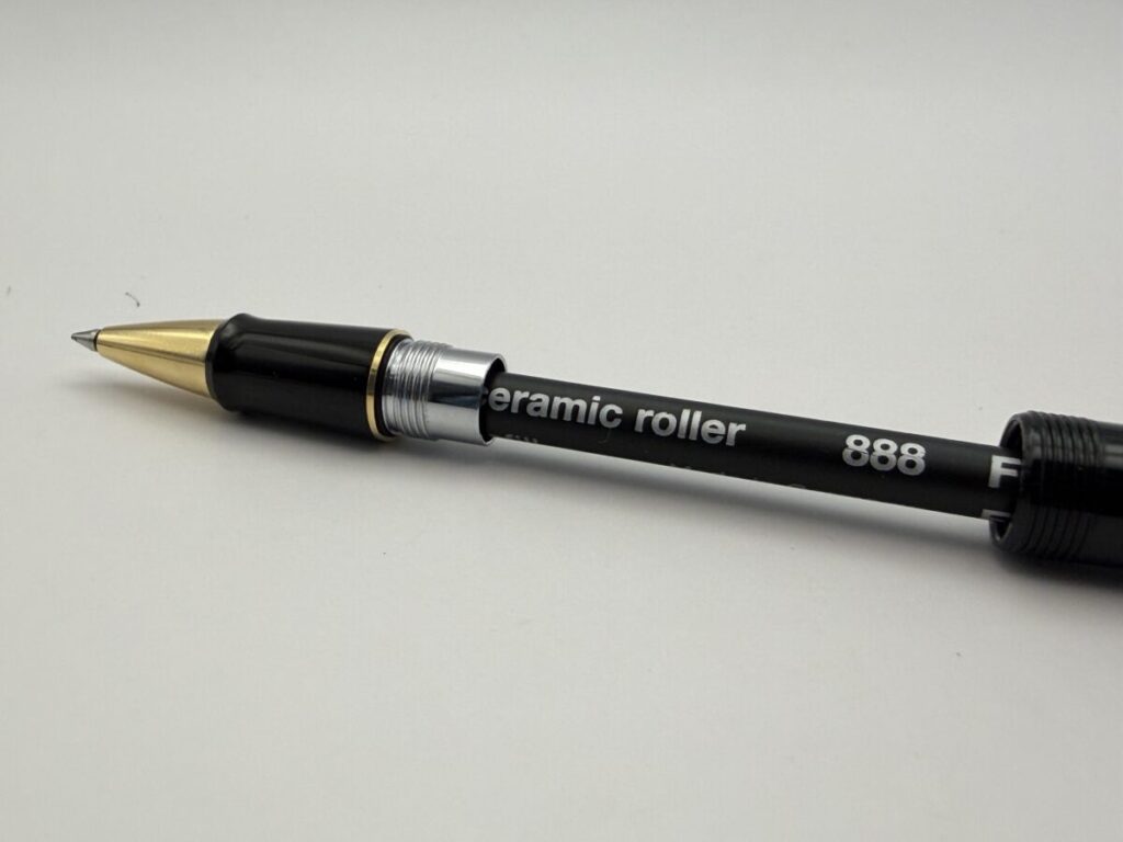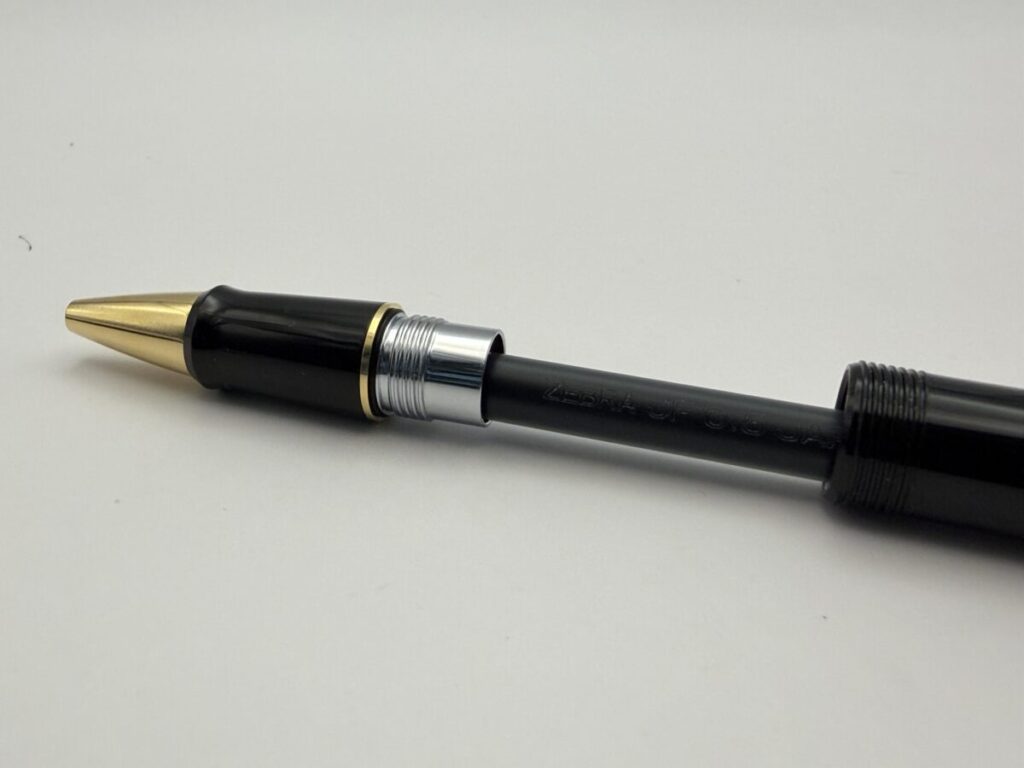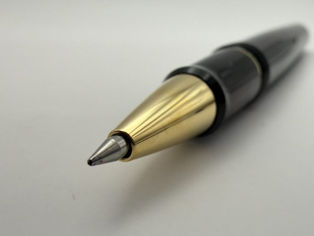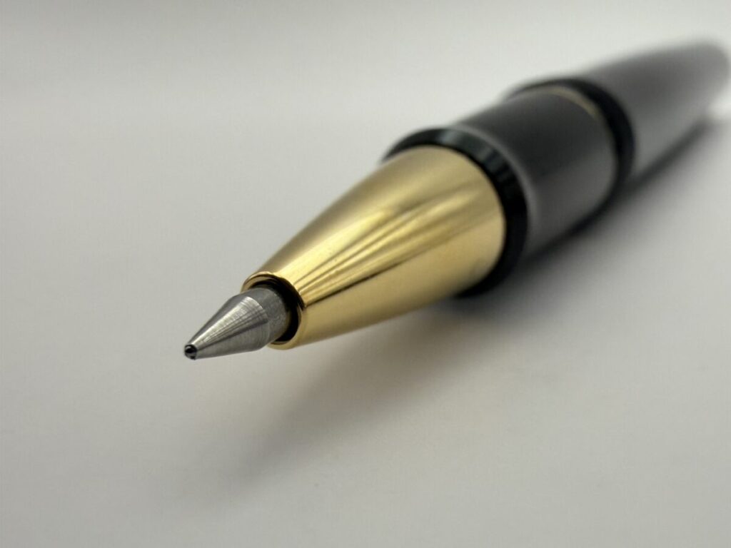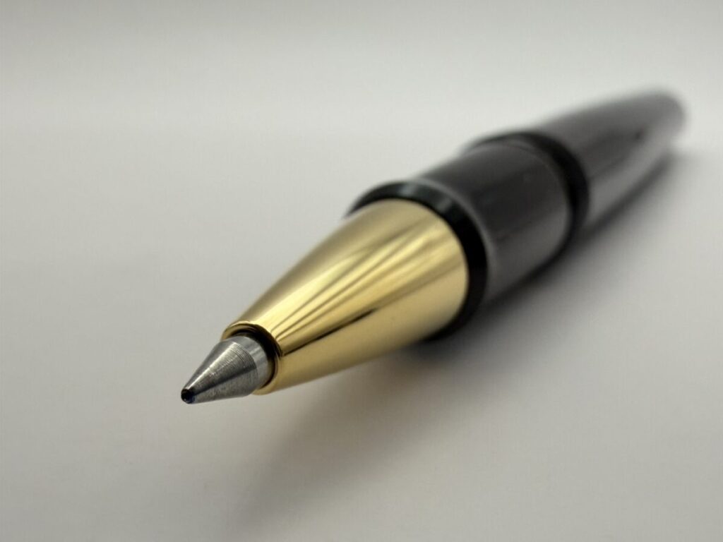 ペン先部分をアップにしてみると、やはり口金とリフィルのペン先部分とにわずかな隙間が見えます。