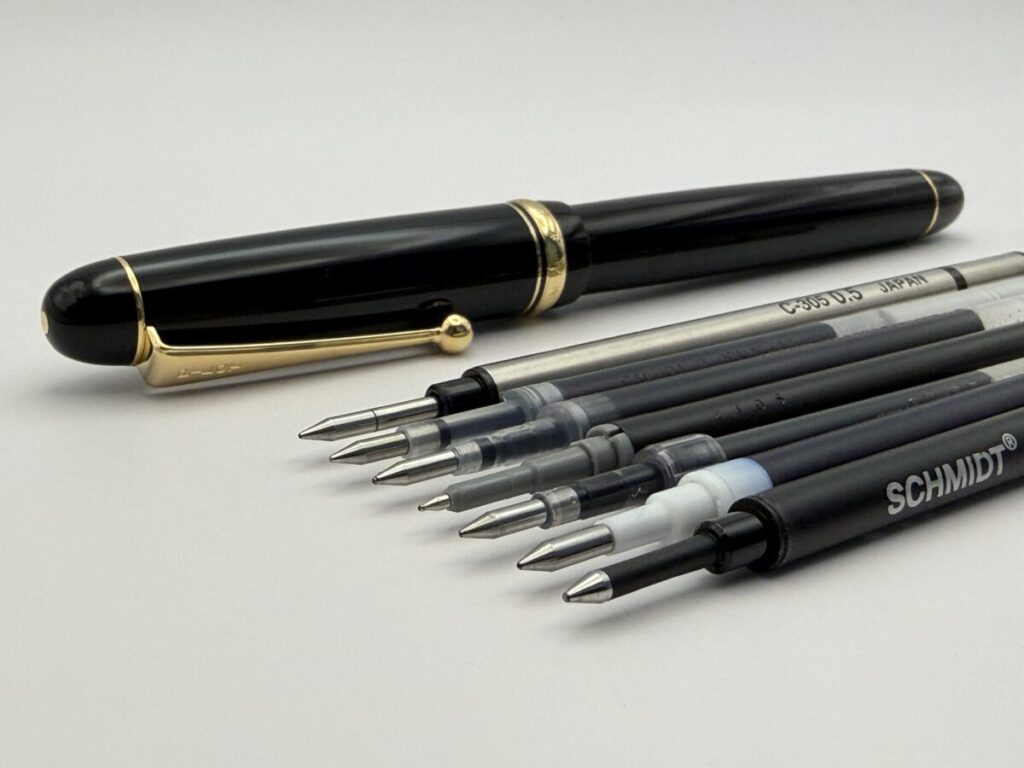 書き味も悪くないですが、せっかくのカスタム74ゲルという高級軸を使って、違うボールサイズのものや黒以外のカラーなどもいろんなリフィル使いたいですよね。