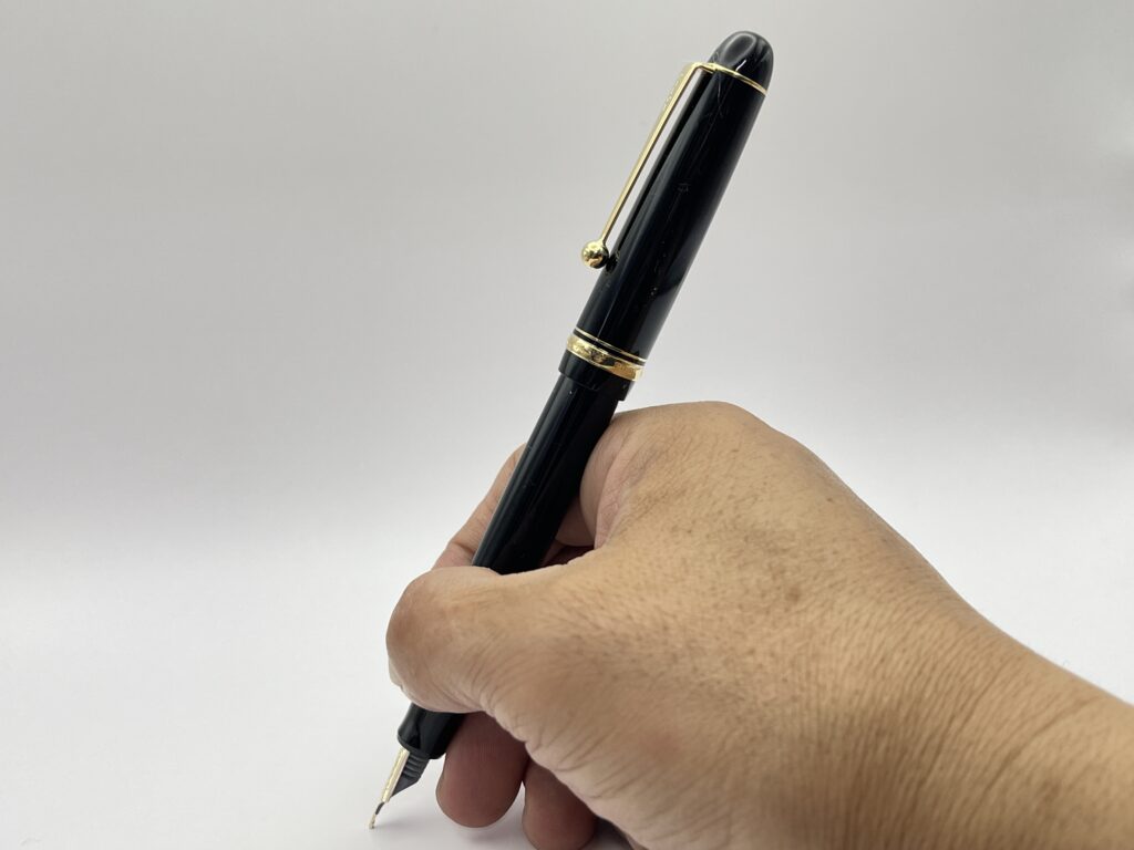 ボールペンなどと比べるとちょっと太いかなと感じるかもしれませんが、筆圧をかけなくても筆記できる万年筆ならではのゆったり持つのにちょうどいいサイズ感ですよ。