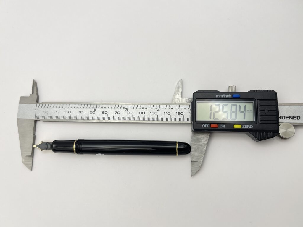 キャップを閉めた状態での全長は143.59mm、キャップを外した状態で125.848mmでした。