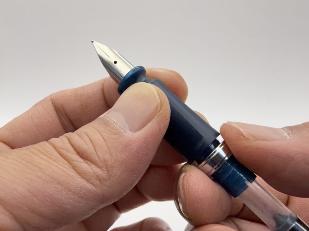 ただ、これまで何度か万年筆を使ってみたけどかすれて書きにくいと感じていた人には、このアジャスト機構で角度を調整すれば書きやすくなるんじゃないかなと思います。