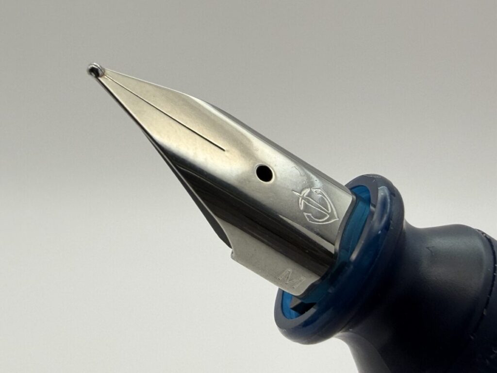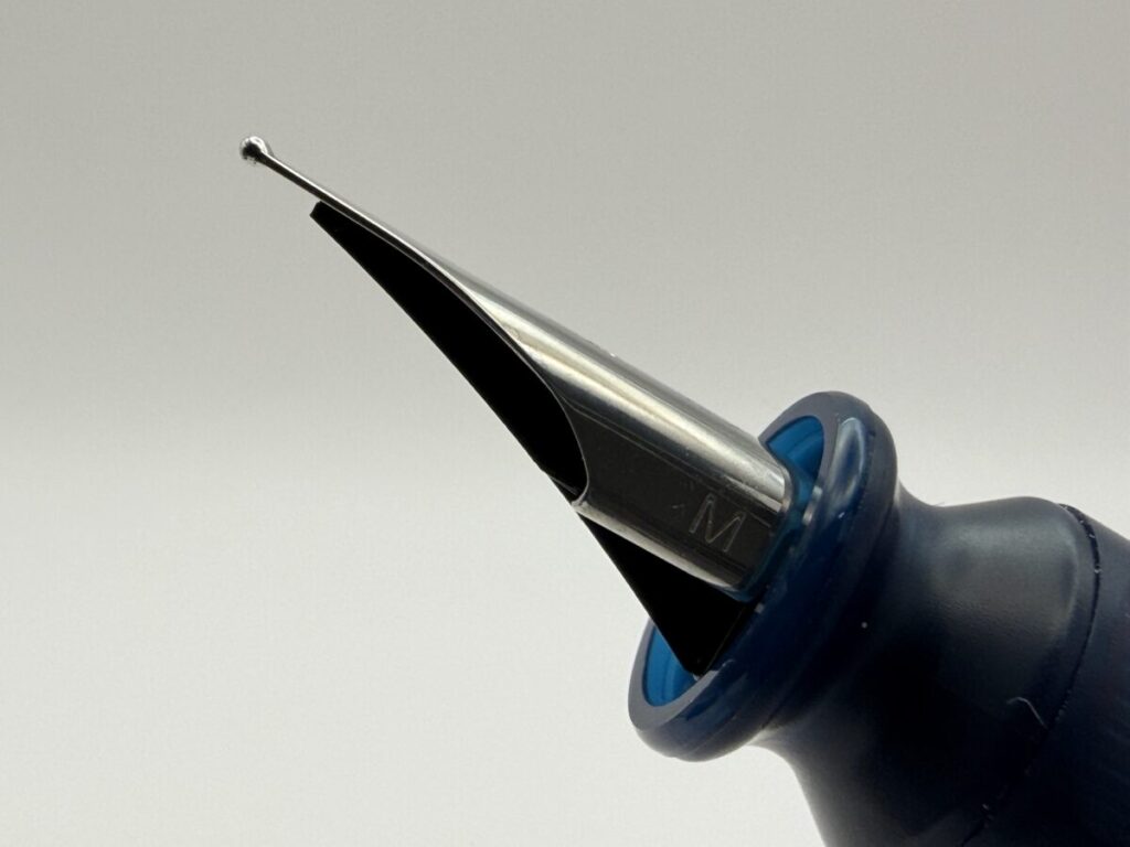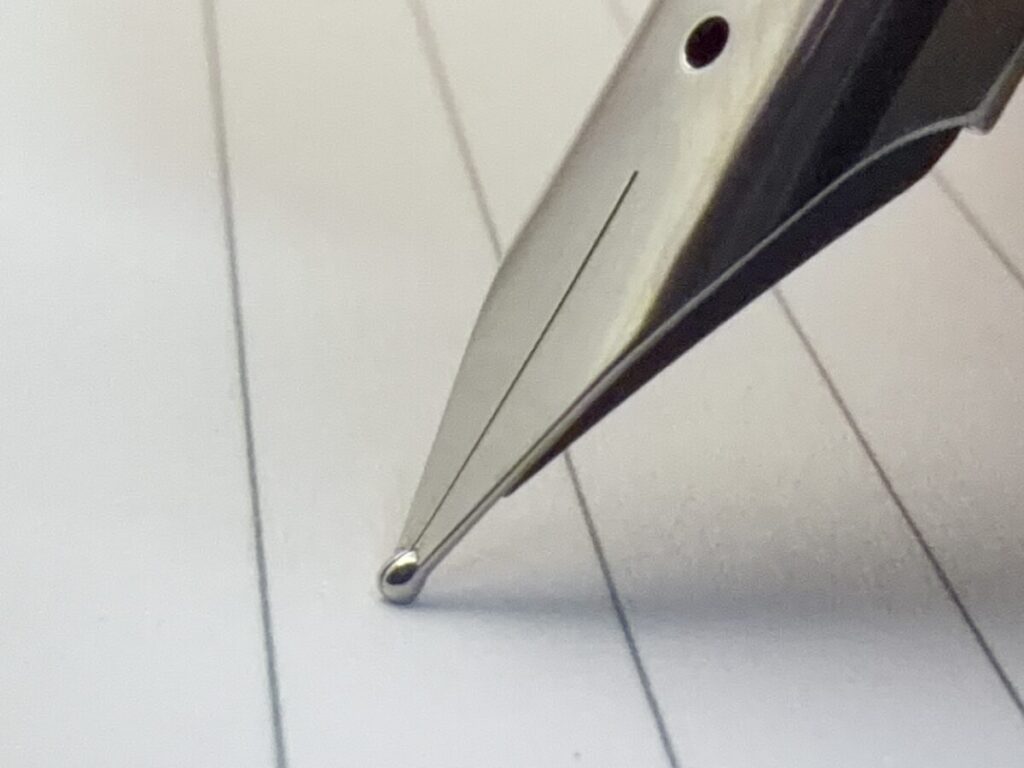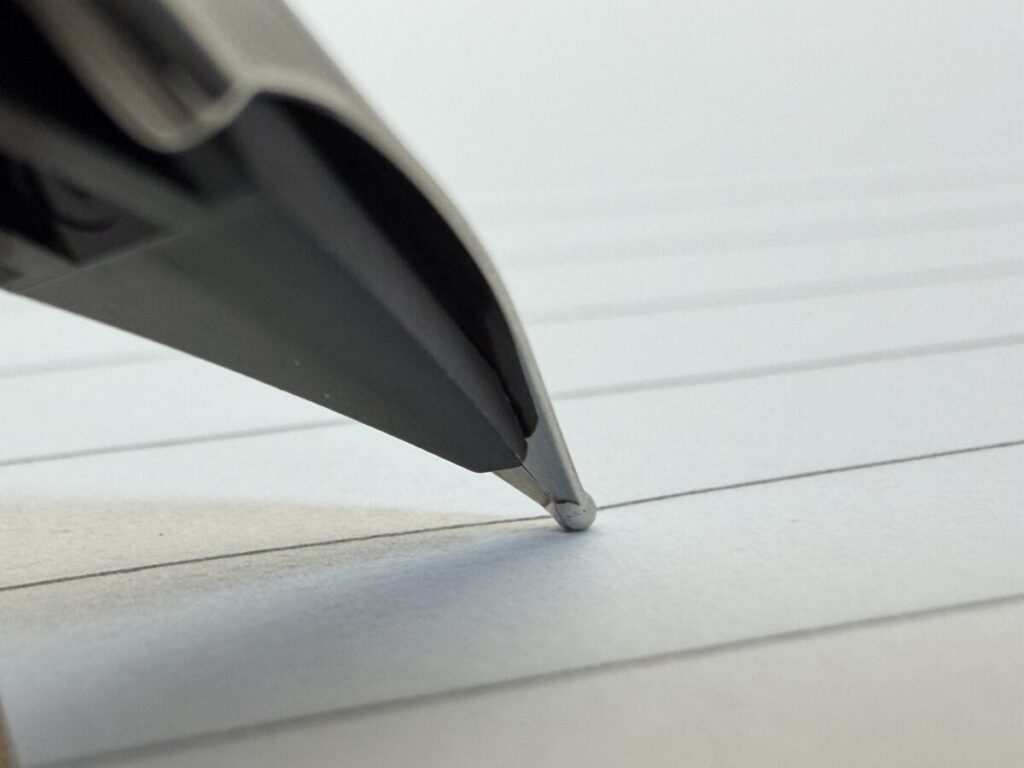 また切り割りが離れていることで、ペン先の角度を変えてもインクの供給ルートが歪みにくく安定した筆記感を得られるといった効果もあります。