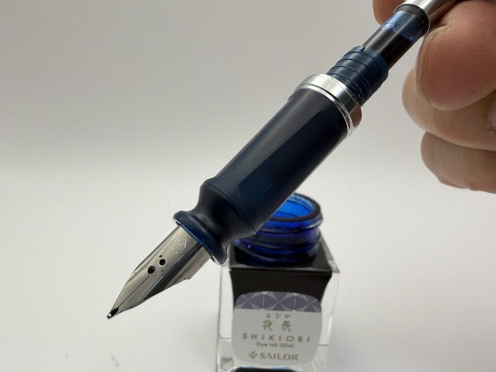 ペン芯が既存のものではなく新たに設計されたもので、ペン先のハート穴まで浸せばインクが吸入できます。
