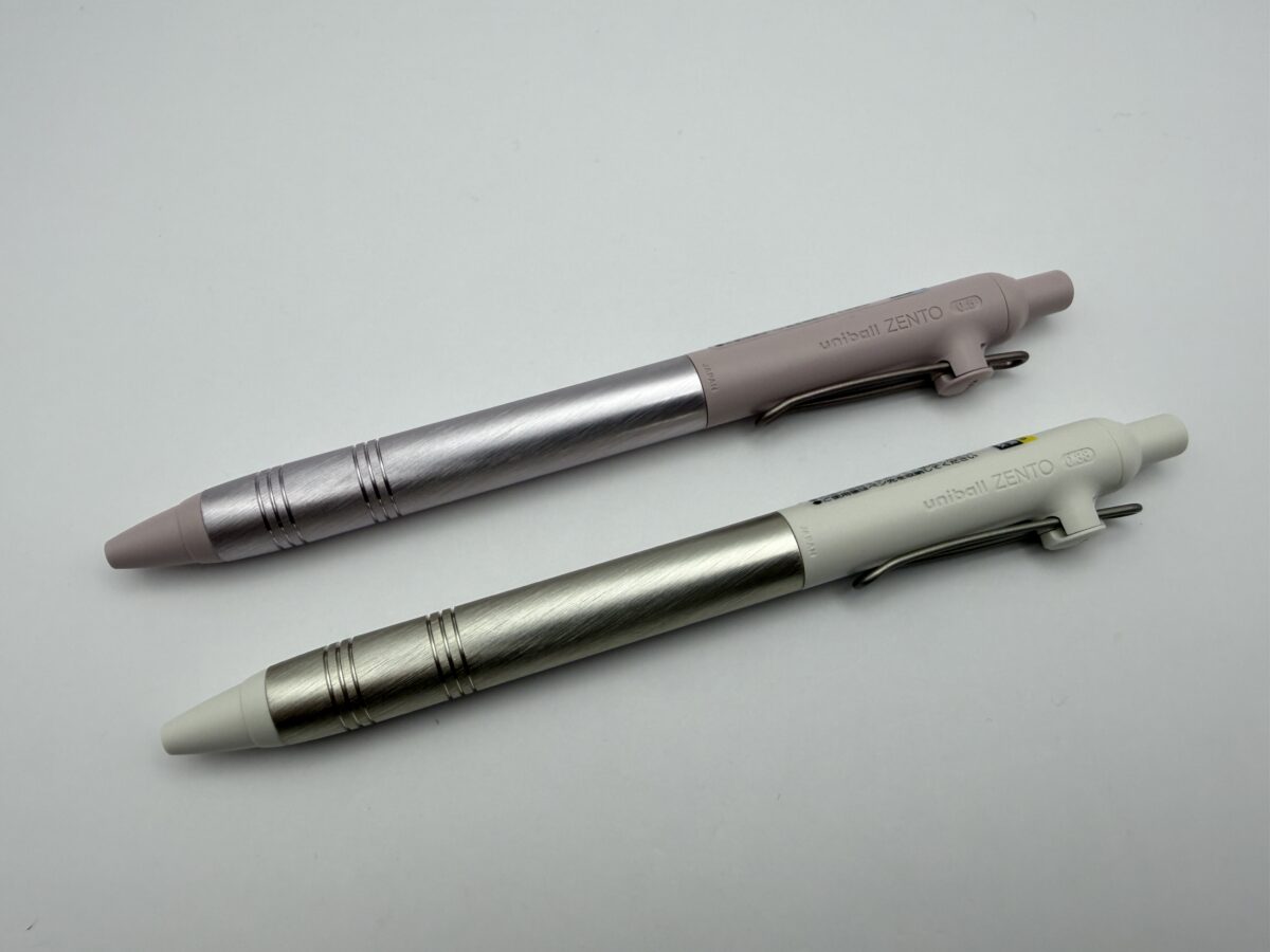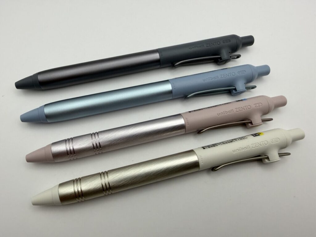 またZENTOには「シグニチャーモデル」「フローモデル」「スタンダードモデル」「ベーシックモデル」と全部で4モデルありますが、今回は2025年8月に登場したユニボールZENTOのフローモデル新色2種類をレビューします。