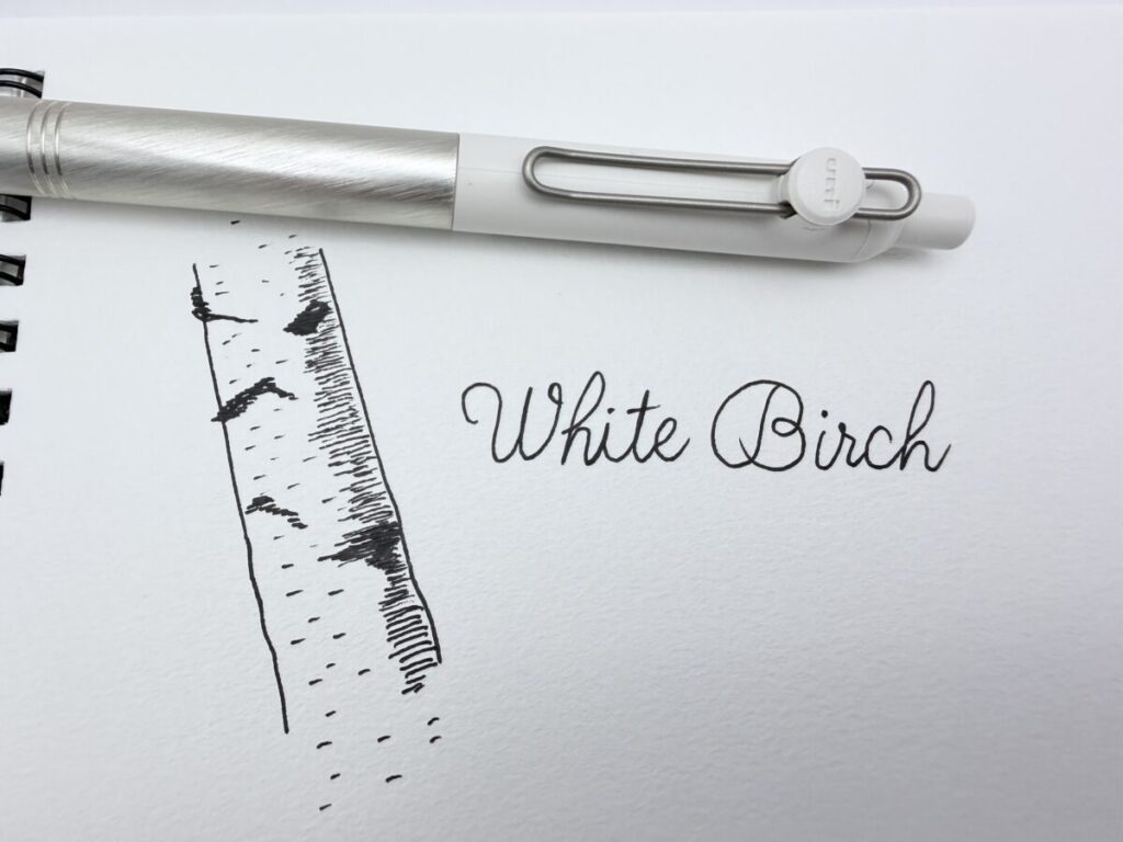 樹脂部分は暖かみのある白で、白樺の白さがイメージできますね。