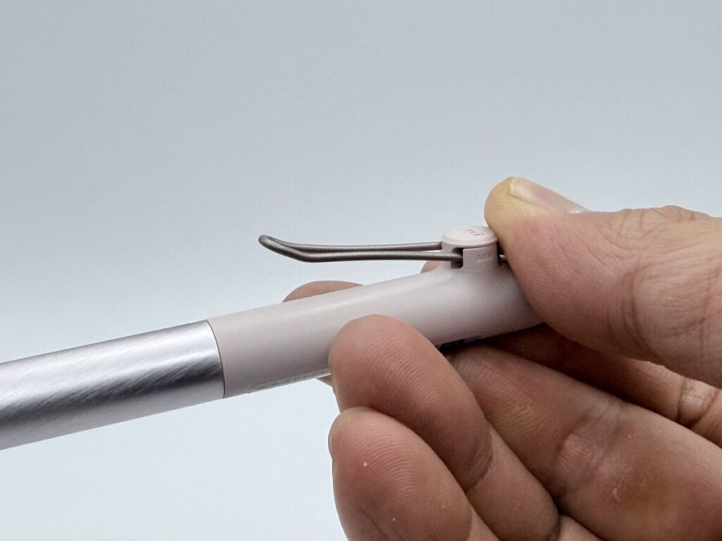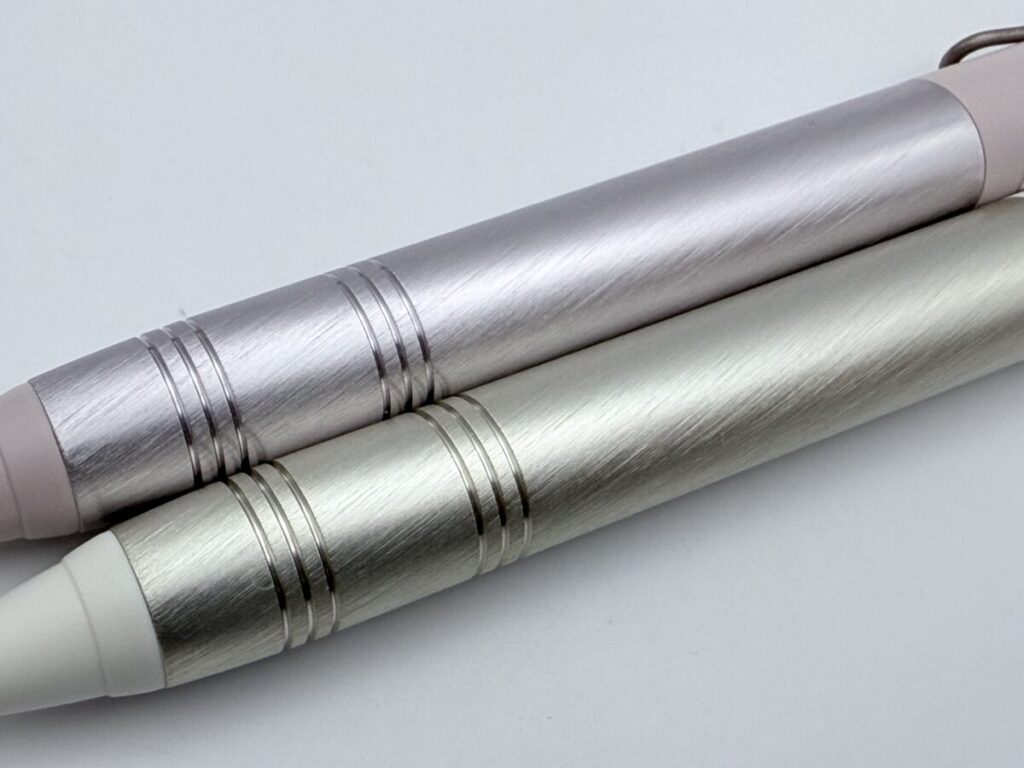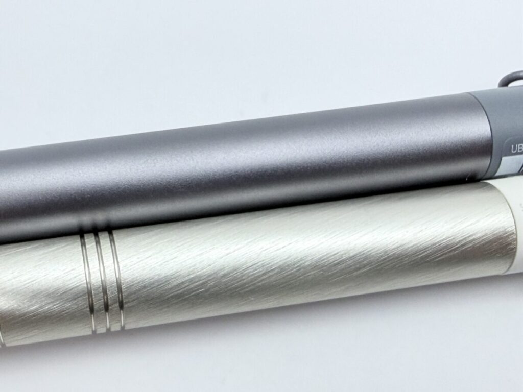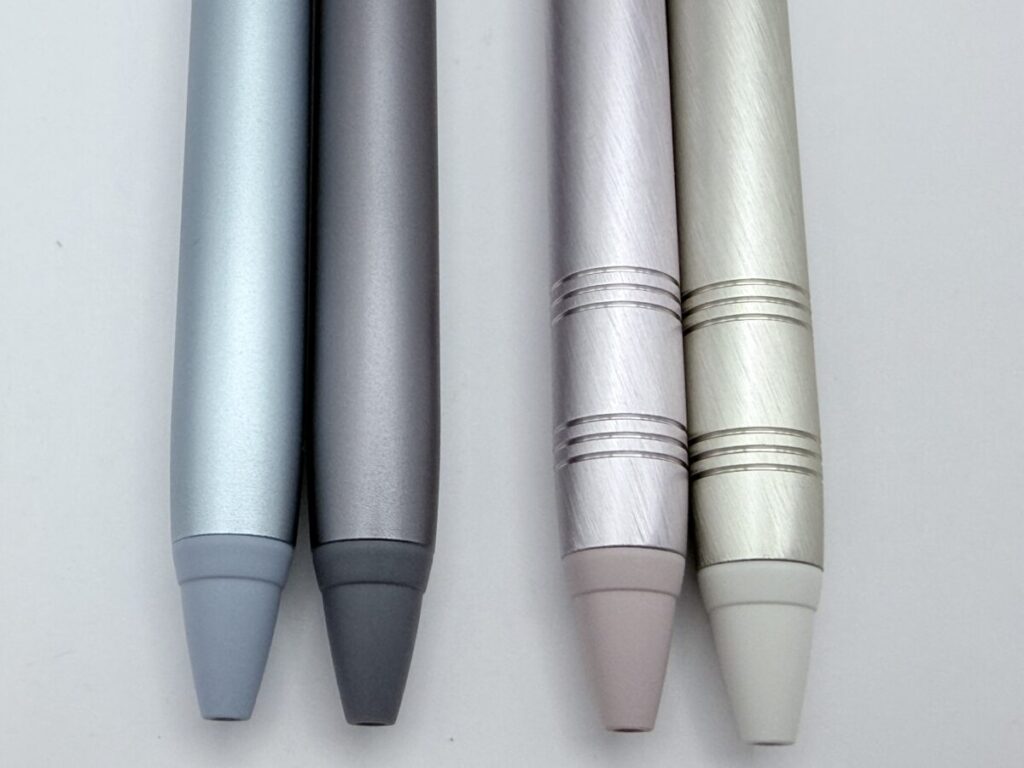 グリップする金属部分を見ると先発モデルはマット感のある塗装ですが、新色では全体にヘアライン加工が施されていますね。
