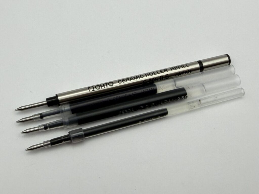 同じ規格なので当然ですが、パッと見た感じではどちらがZENTOリフィルかゼブラのJF芯か分からないですね。