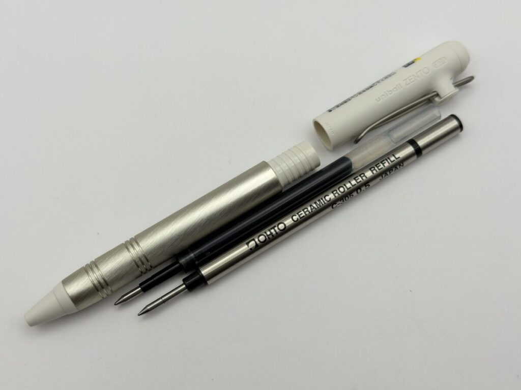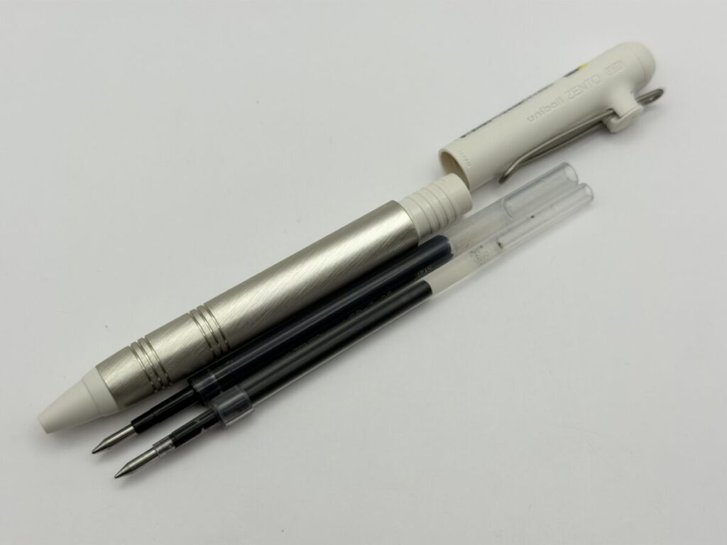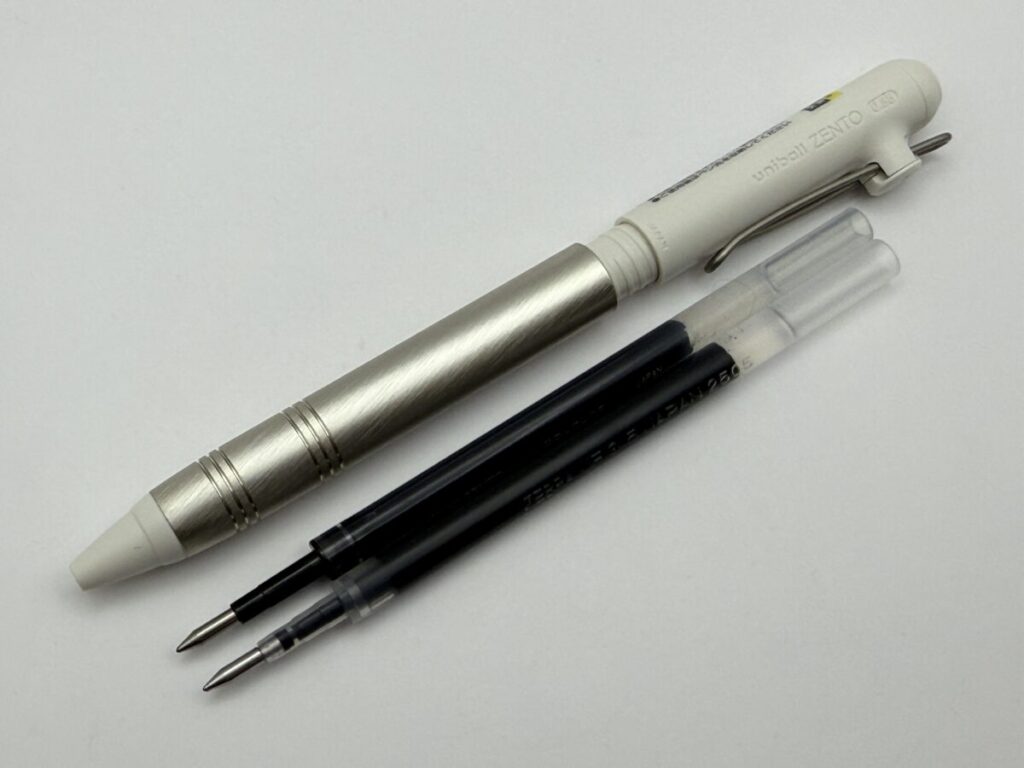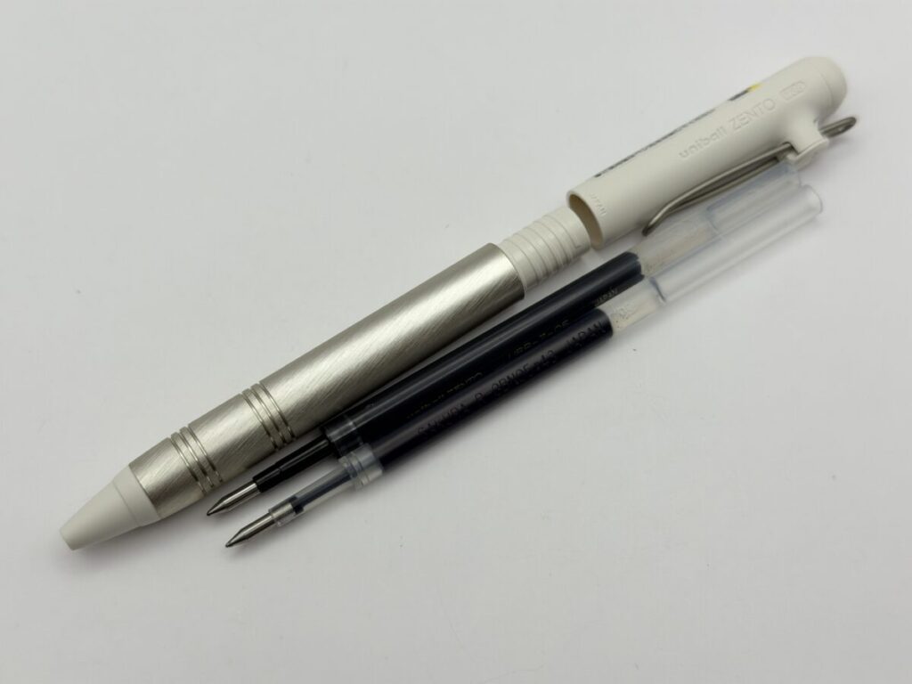またリフィルの規格についてですが、ZENTOリフィルを採寸したところユニボールなどに使われているゲルインクリフィルの規格と同じでした。