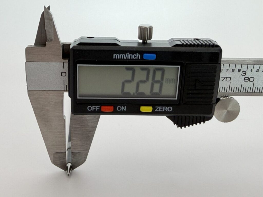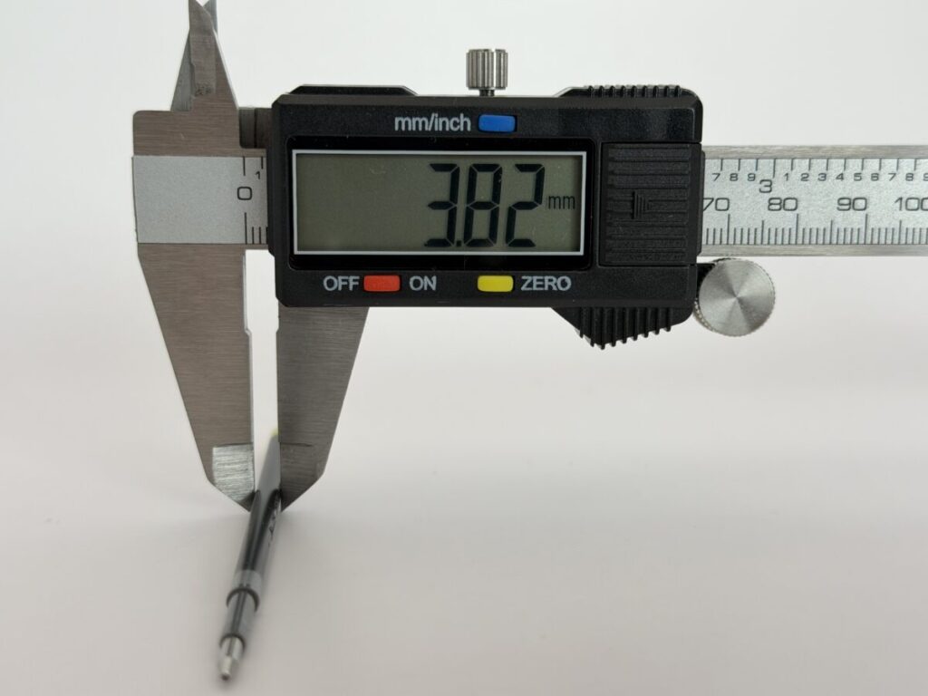最大径(軸径)は3.82mm、ペン先径は2.28mmでした。
