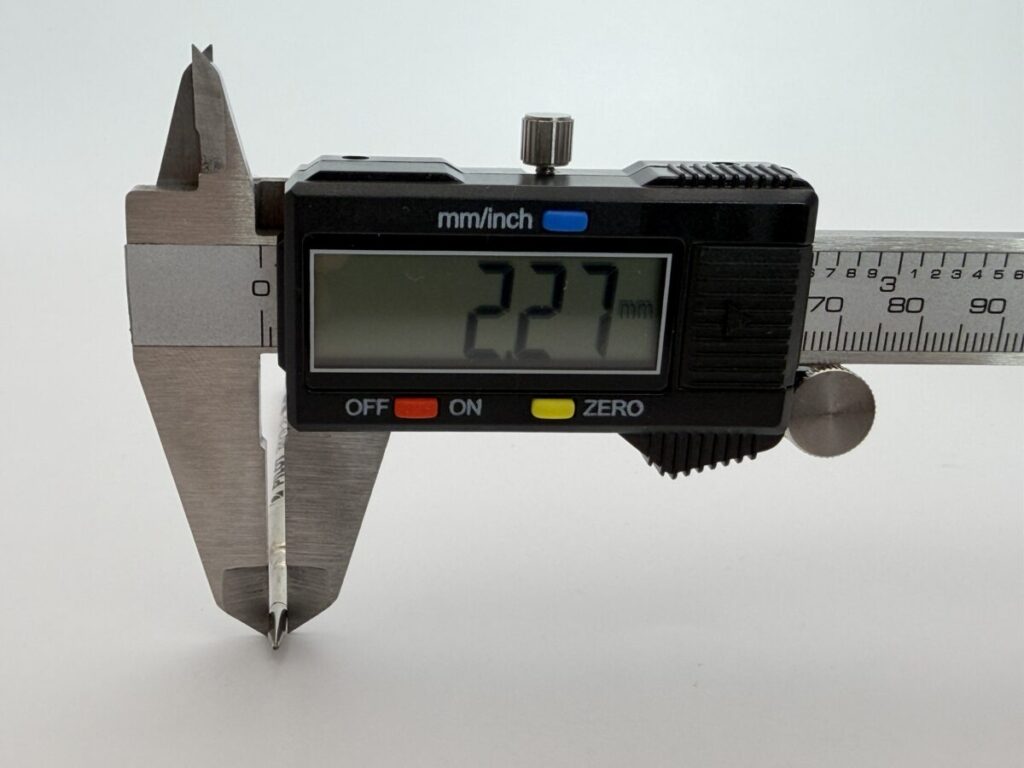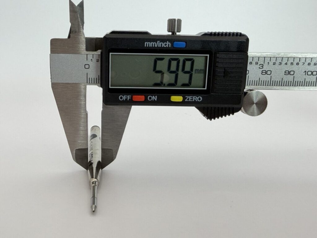 最大径は5.99mm、ペン先径は2.27mmでした。