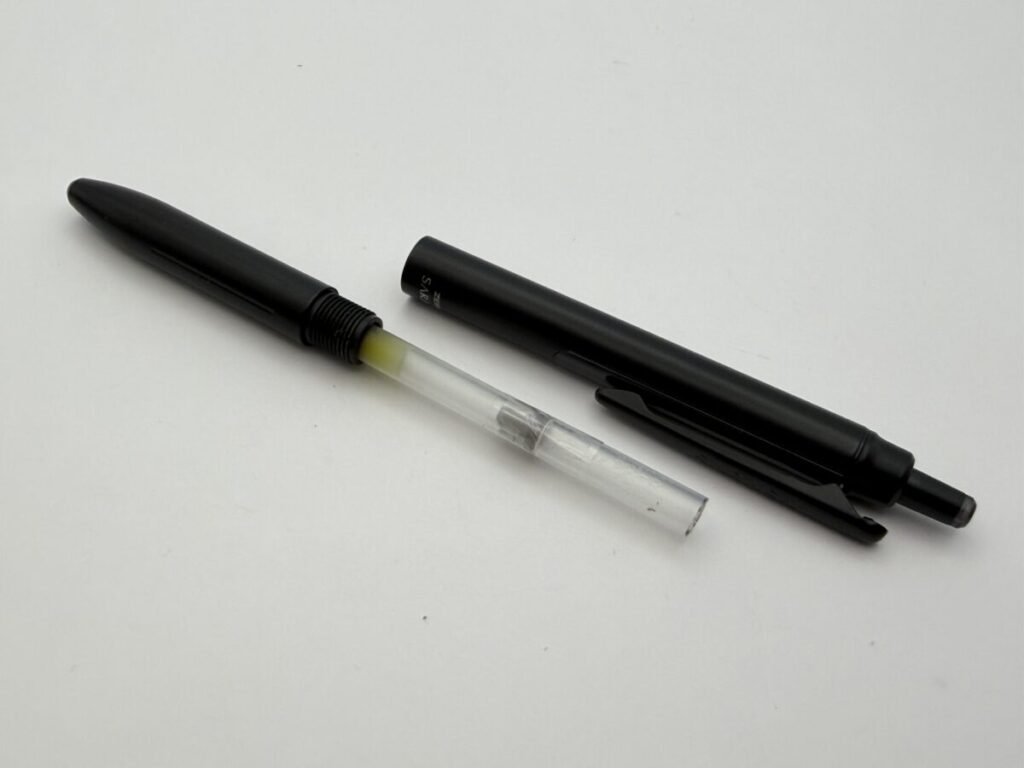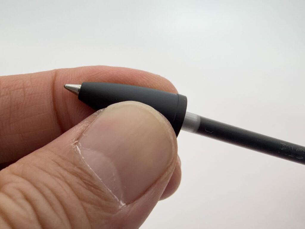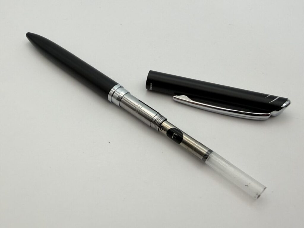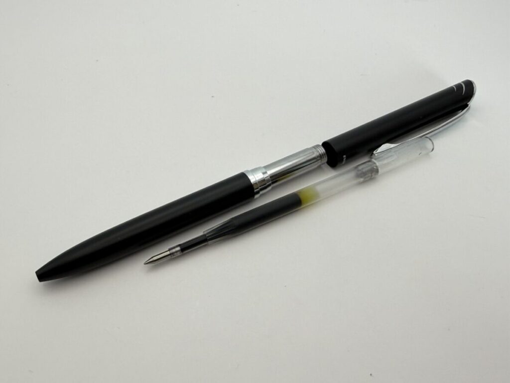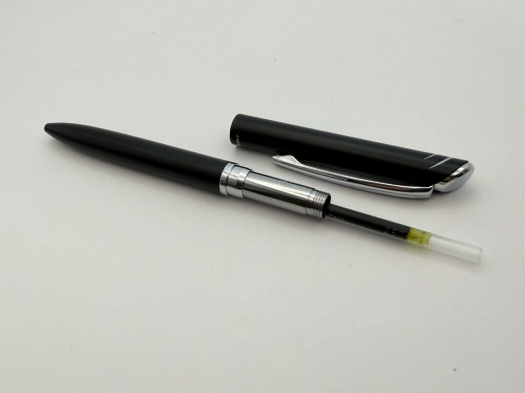 無加工ではペン先が飛び出してしまっていましたが、4mmカットすることで軸内に収まりました。