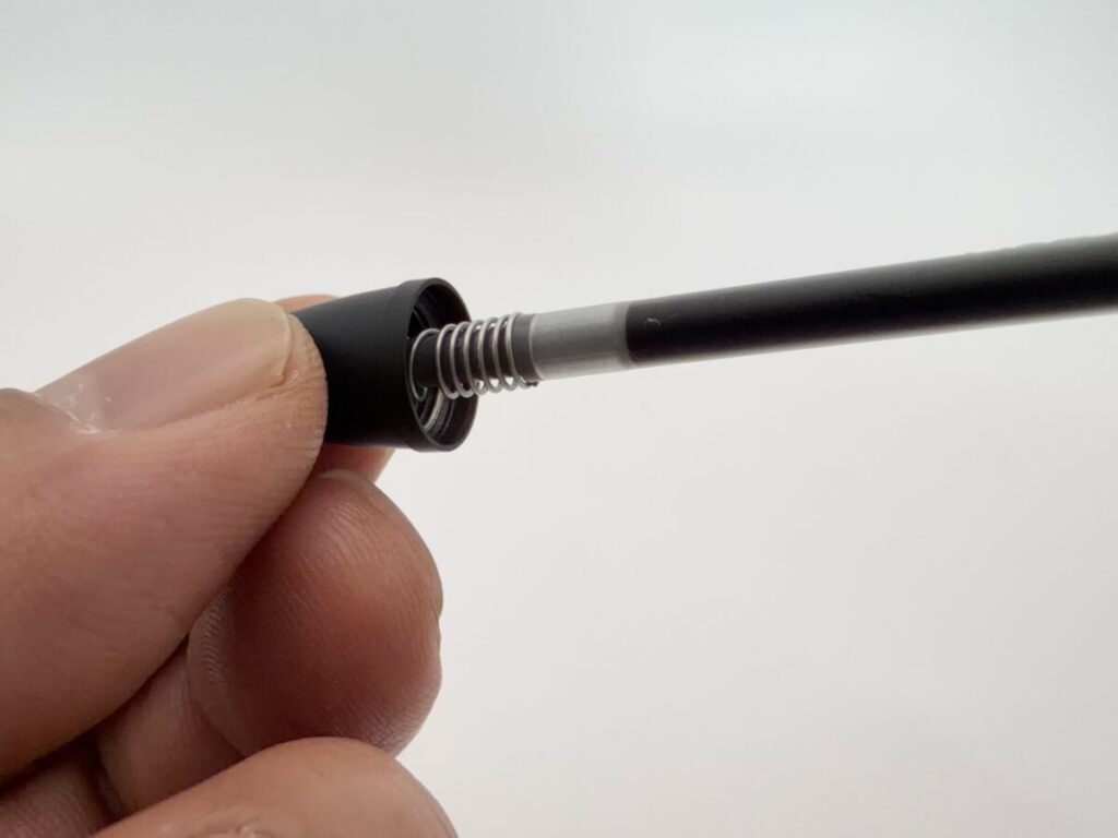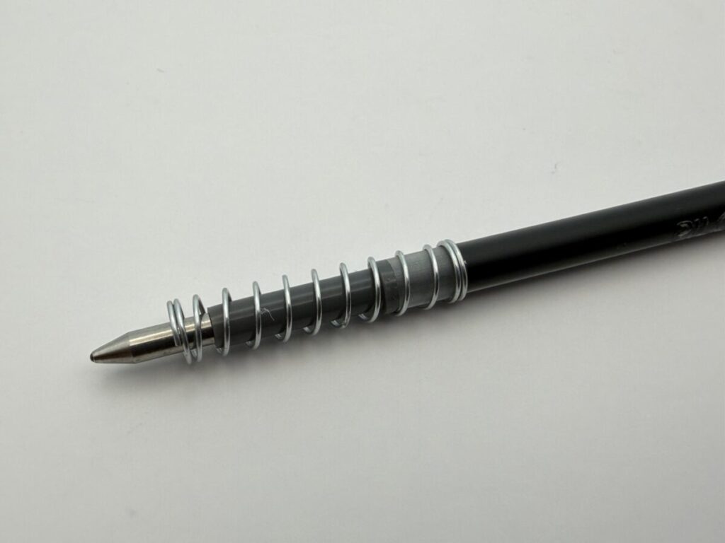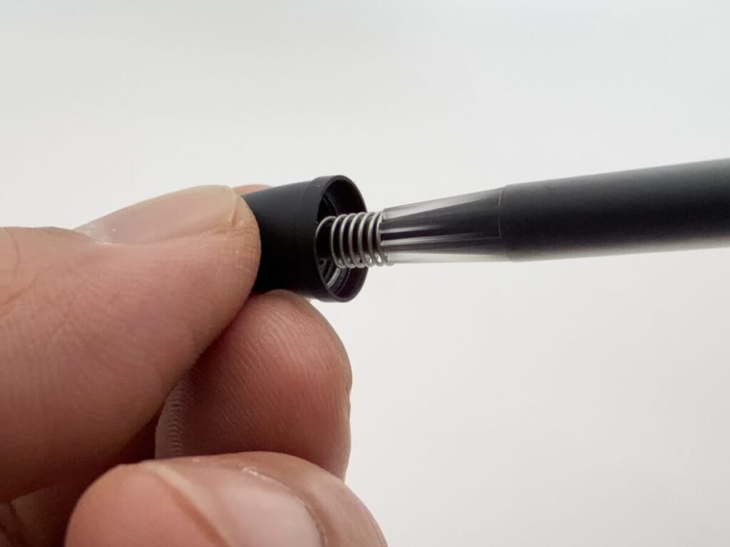 タンク部分をテープなどで太くすればバネが引っかかって使えるかもしれませんが、軸内にテープが残ってしまうリスクもあるので、実証はやめておきました。