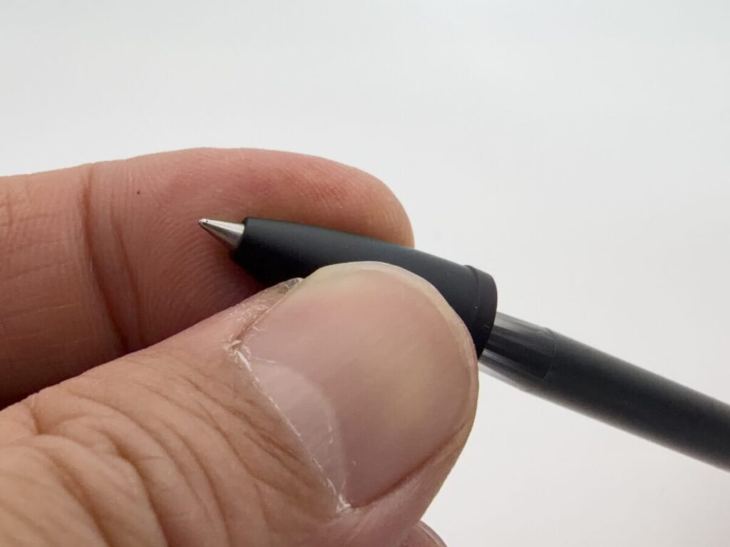 写真ではペン先に隙間がかなりあるように見えますが、筆記時にペン先がカタカタせず安定していました。