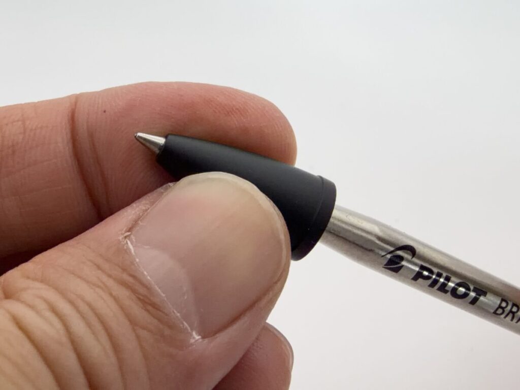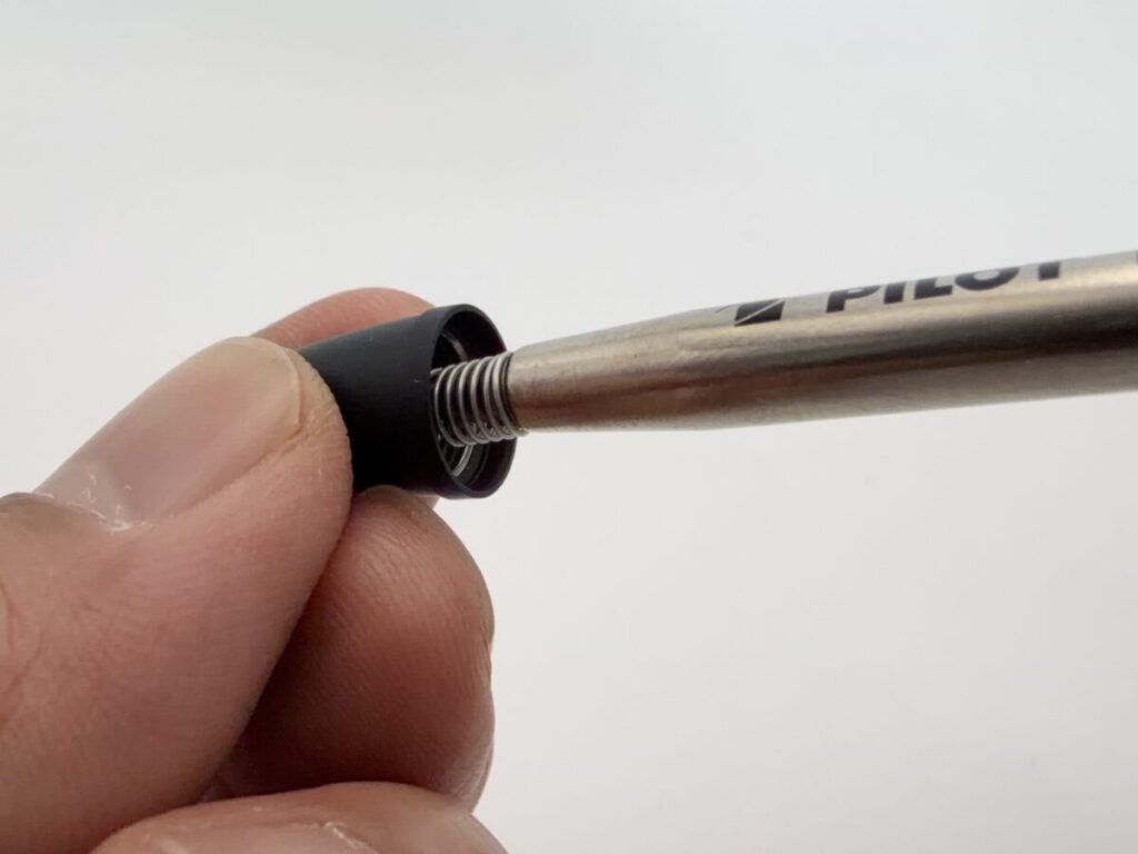 リフィルが細いのでちょっと心配でしたが、ピュアモルトの口金部分にあるバネにはしっかりと引っかかりました。