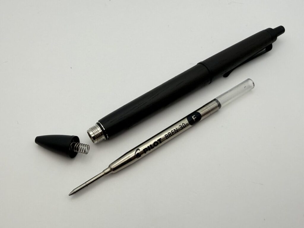 「BRFN-10」と同様、バネの効きに問題はなく、軸内のリフィル固定、筆記にも問題はなかったです。