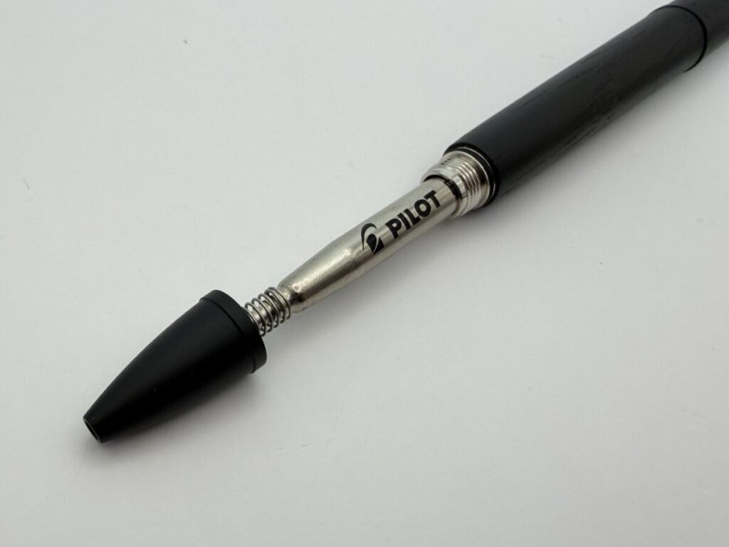 こちらはバネがしっかりと効いて、軸内でリフィルが固定できました。