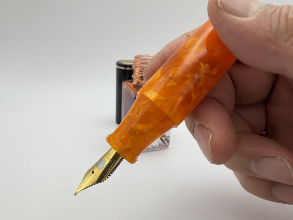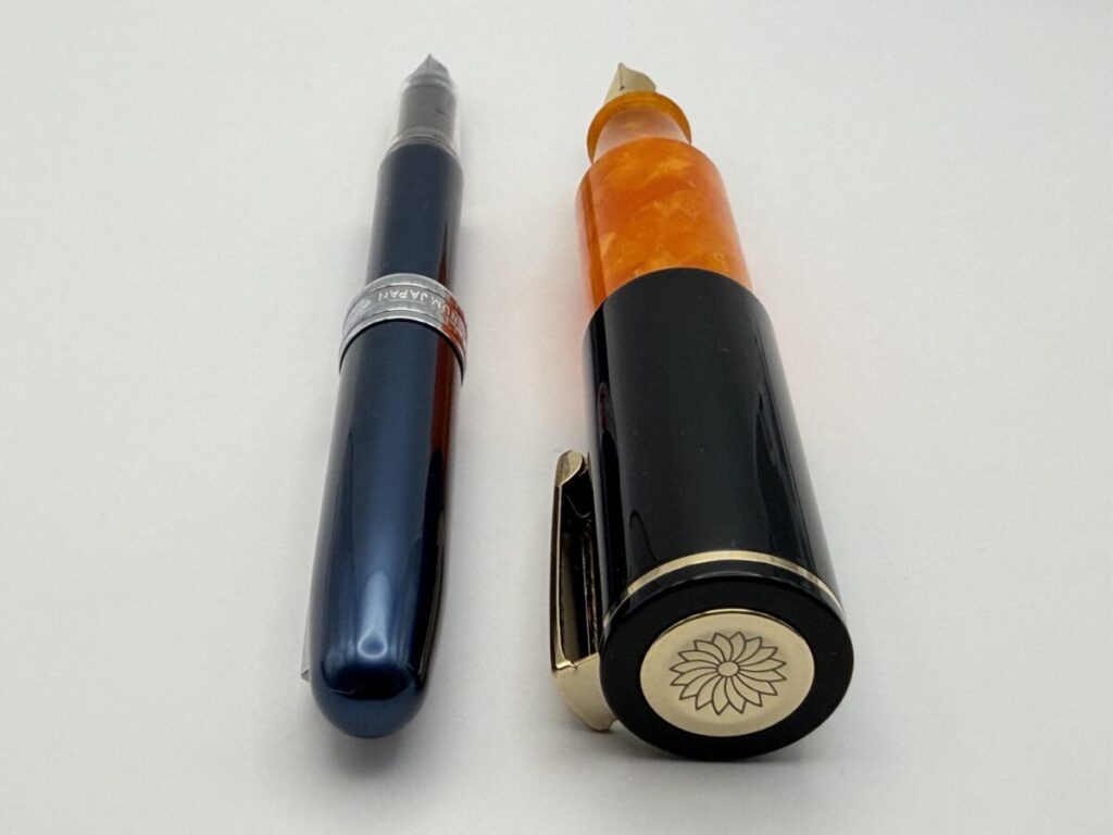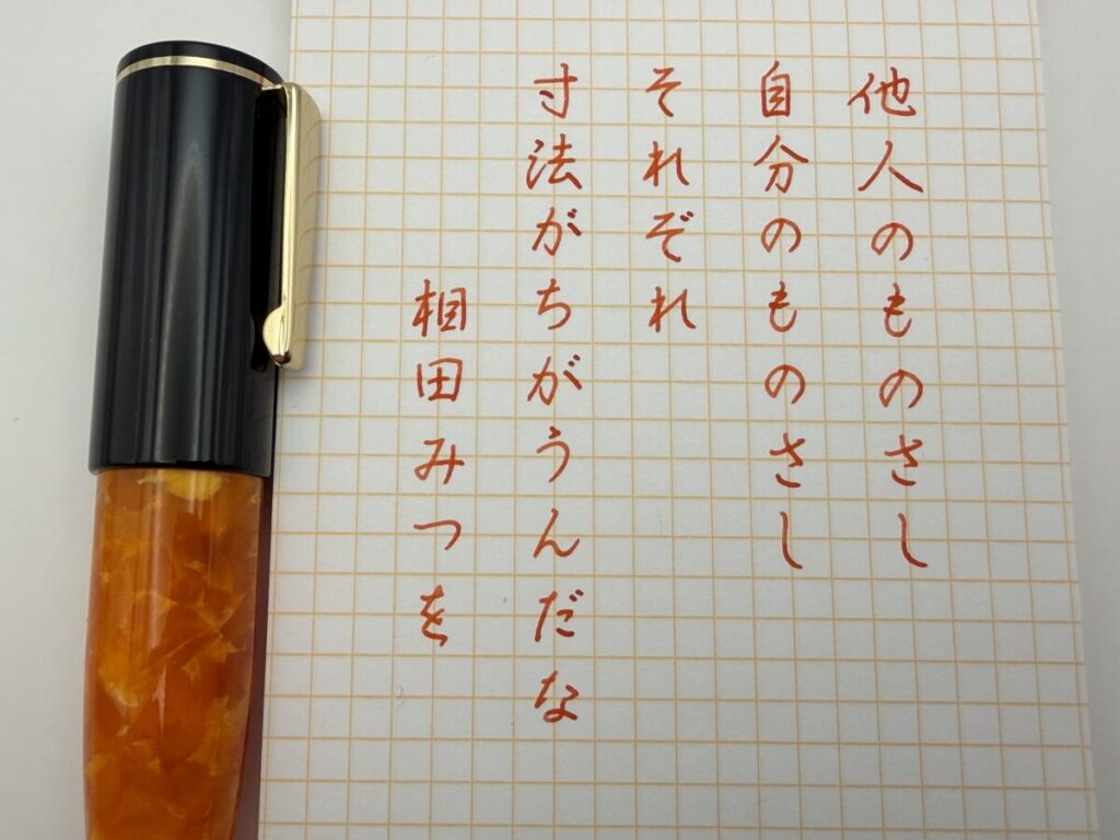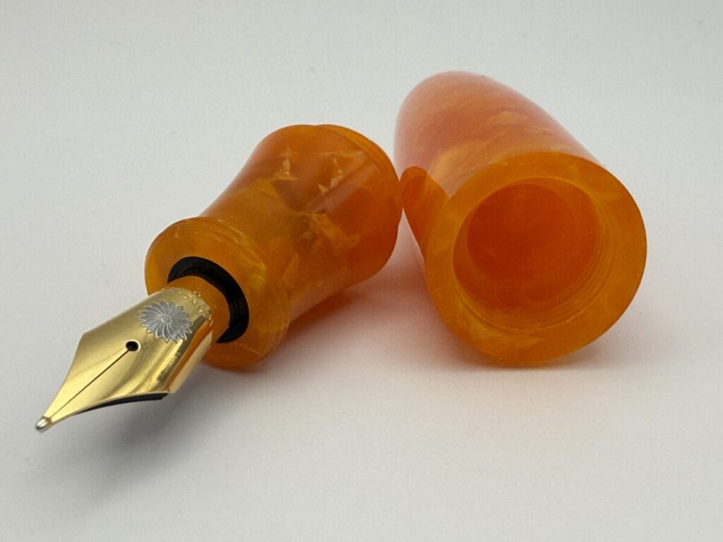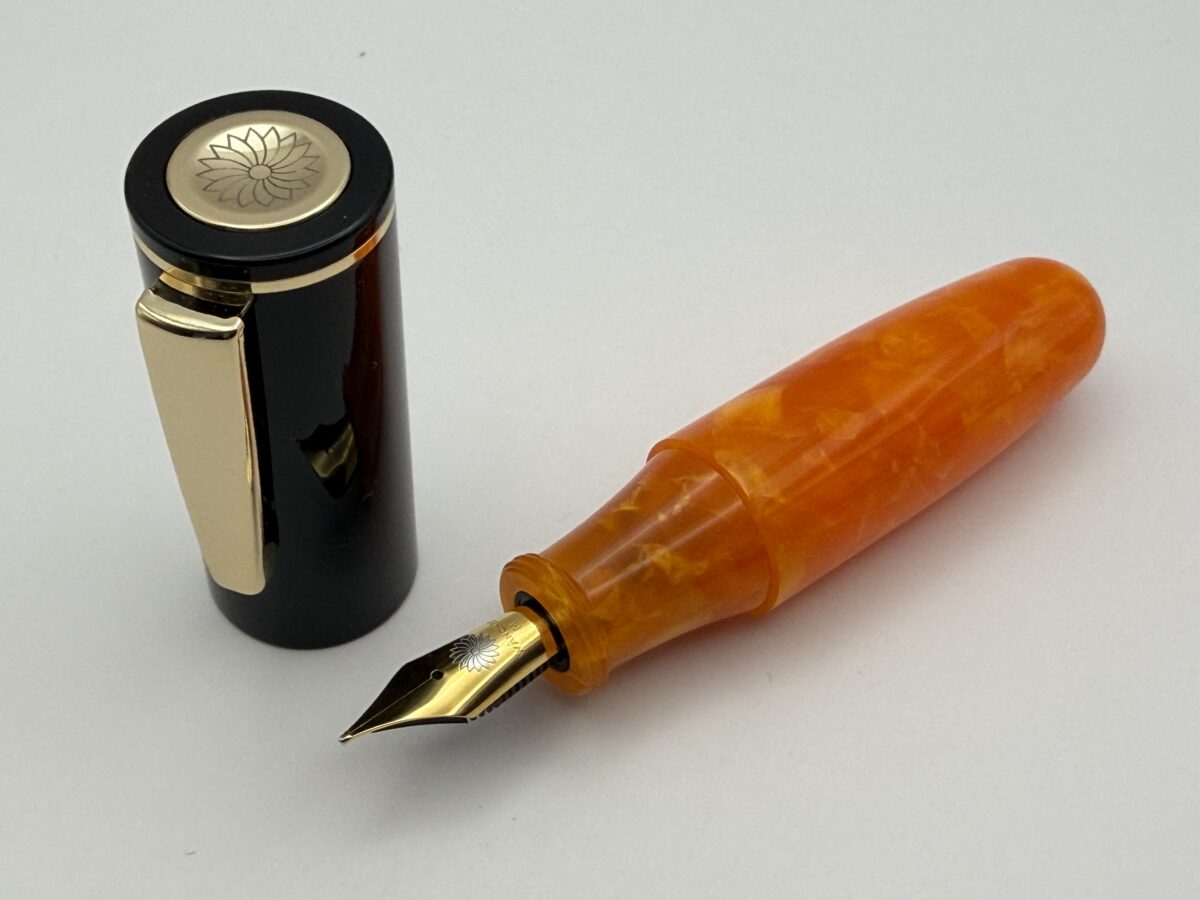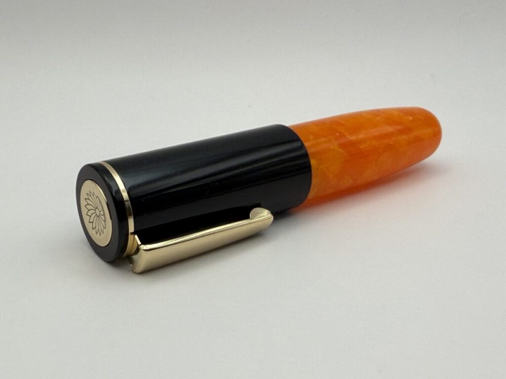 黒いキャップに、軸はマーブルオレンジカラーと、某高級筆記具のカラーリングを彷彿とさせるカラーリングで、ちょっとかっこいいなと思って選びました。