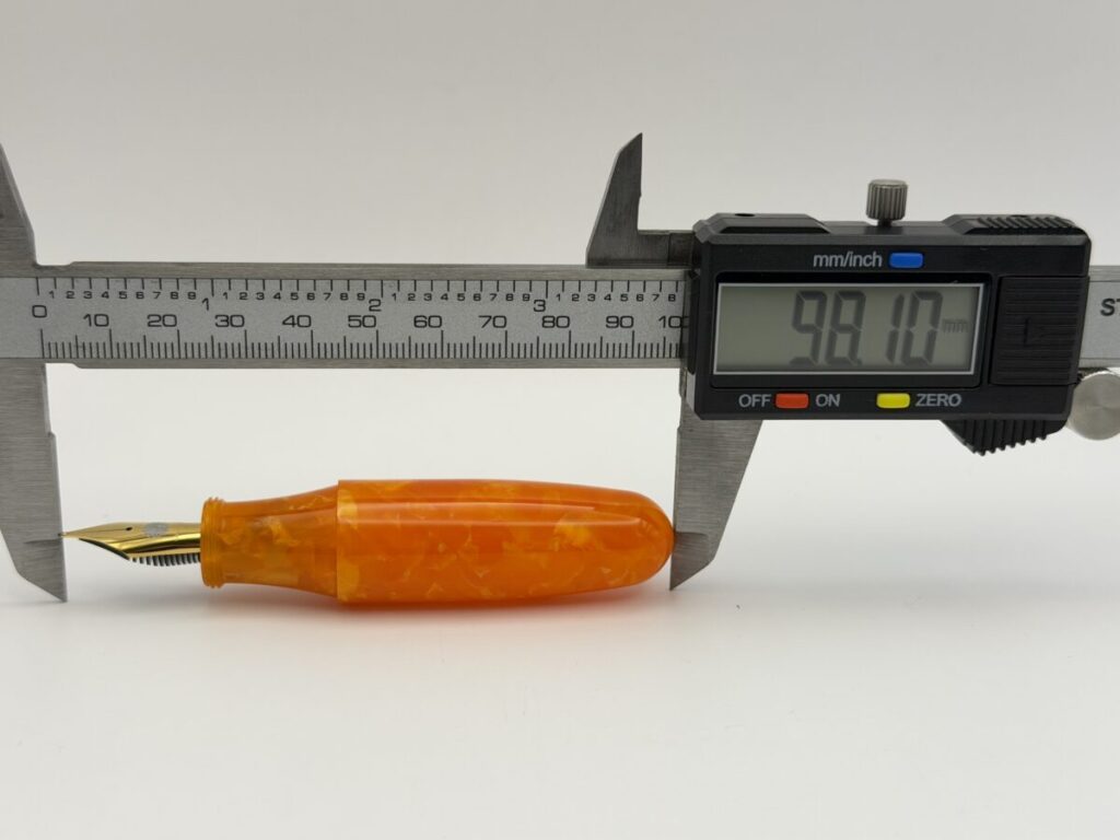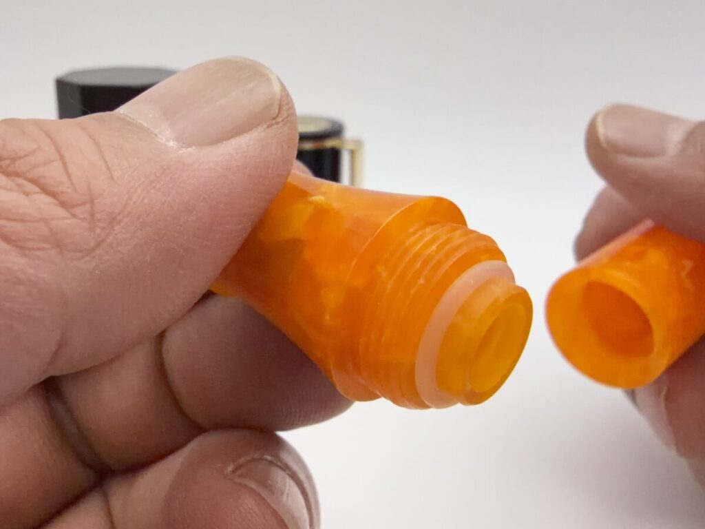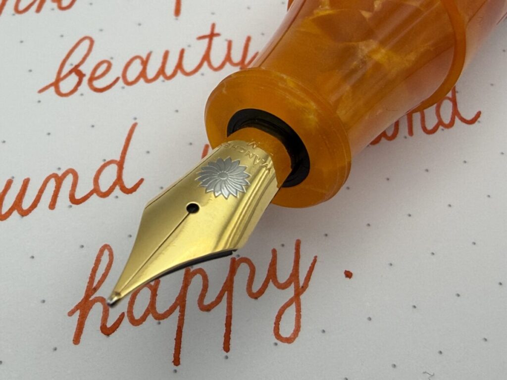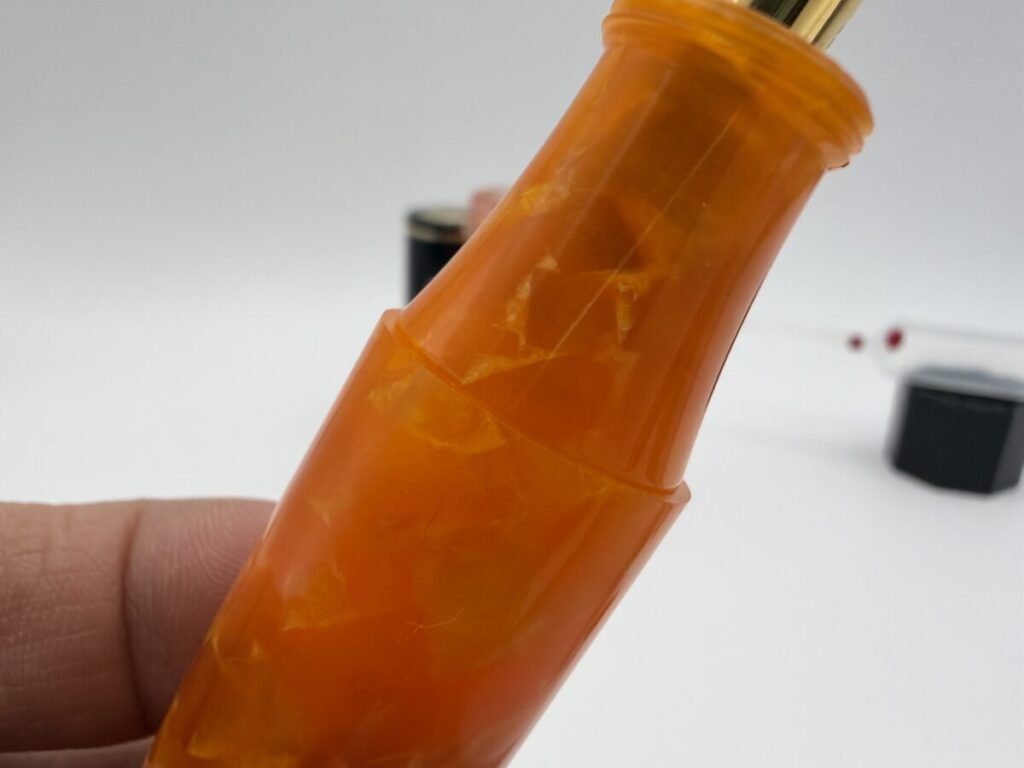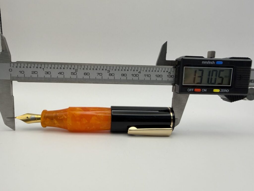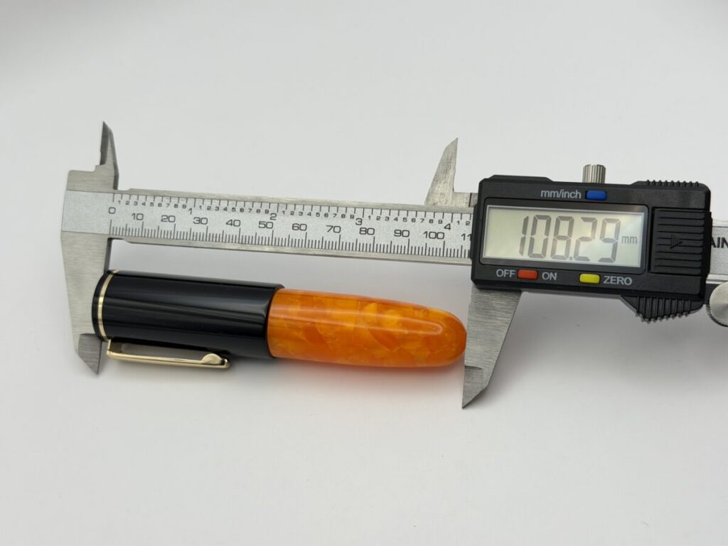 黒いキャップに、軸はマーブルオレンジカラーと、某高級筆記具のカラーリングを彷彿とさせるカラーリングで、ちょっとかっこいいなと思って選びました。