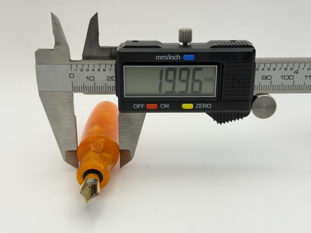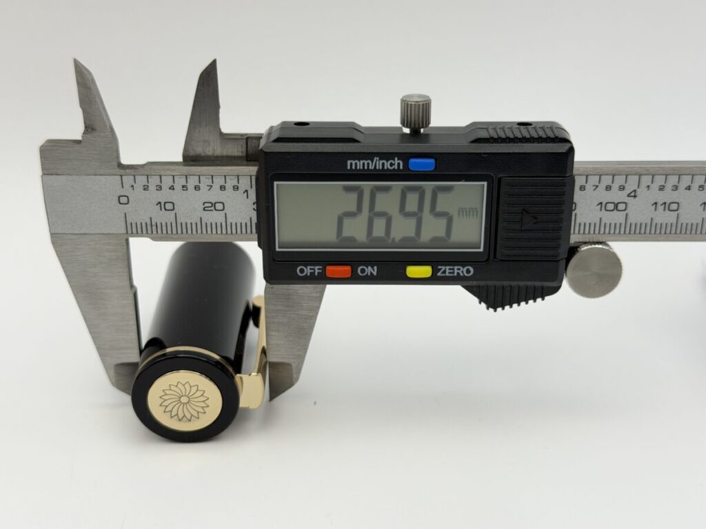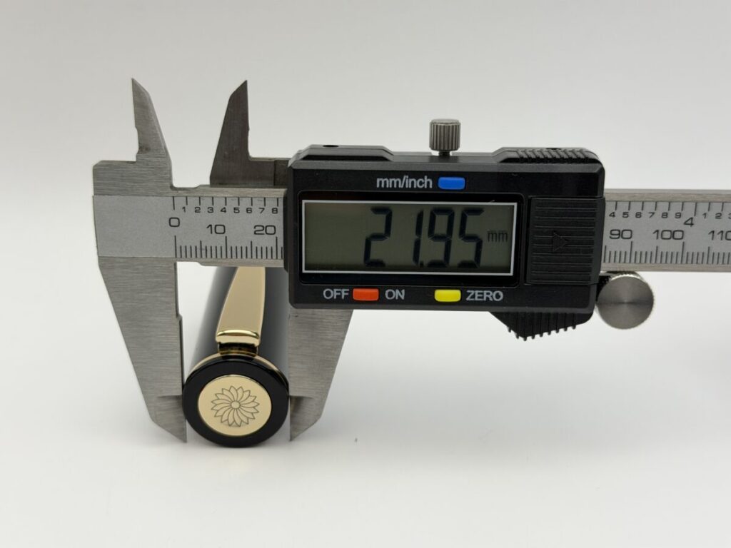 また、キャップ(クリップを含まず)では最大径が21.95mm、クリップを含むと26.95mm。