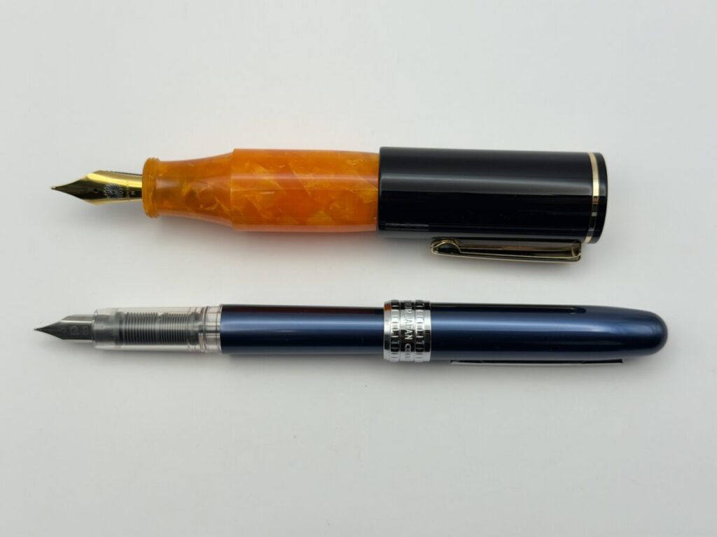 数値だけではちょっとピンとこないかと思いますが、比較にプラチナ万年筆のプレジールと並べてみました。