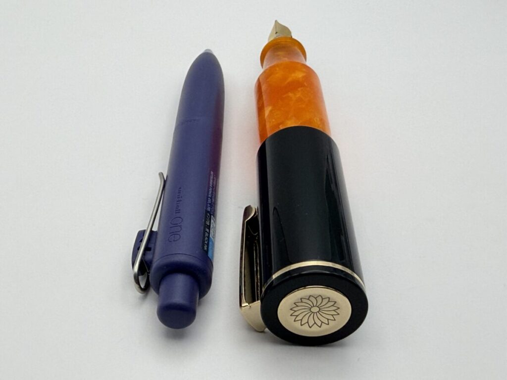 もうひとつ、ぽっちゃりしたボールペンでuniのユニボールワンPと並べてみました。