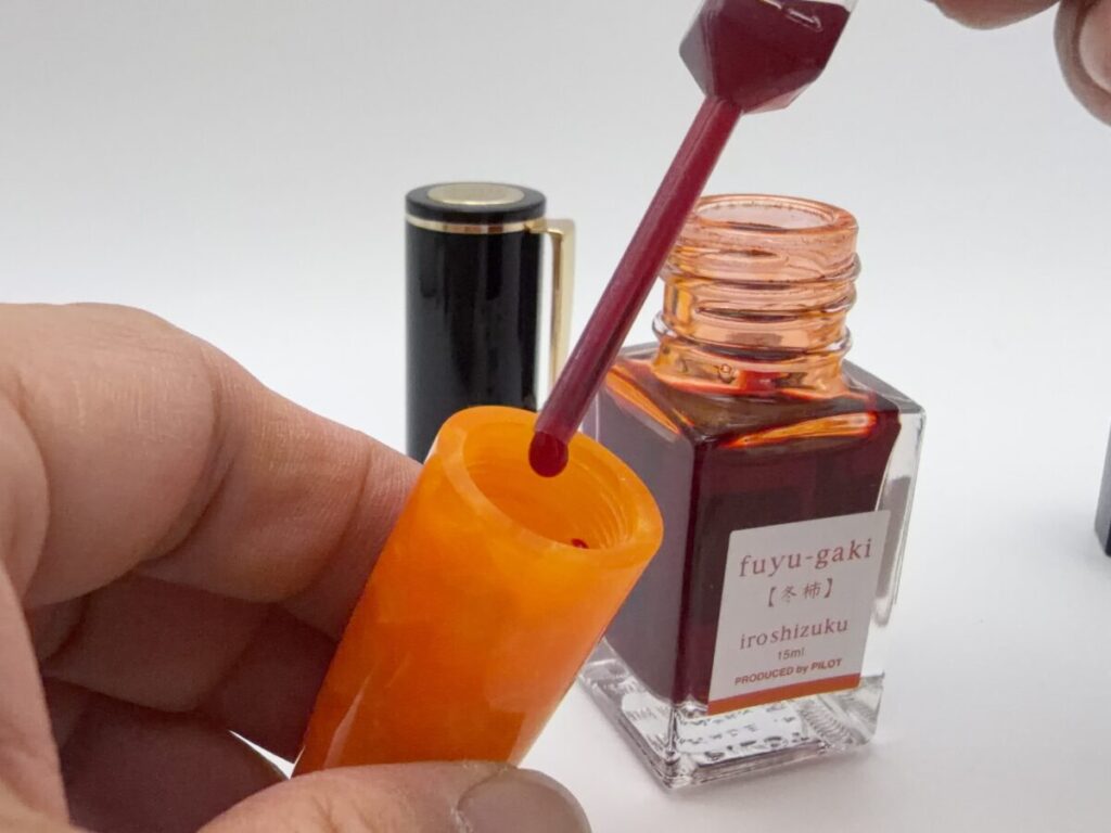 今回は軸のオレンジ色に合わせパイロットの色彩雫「冬柿」にしてみました。